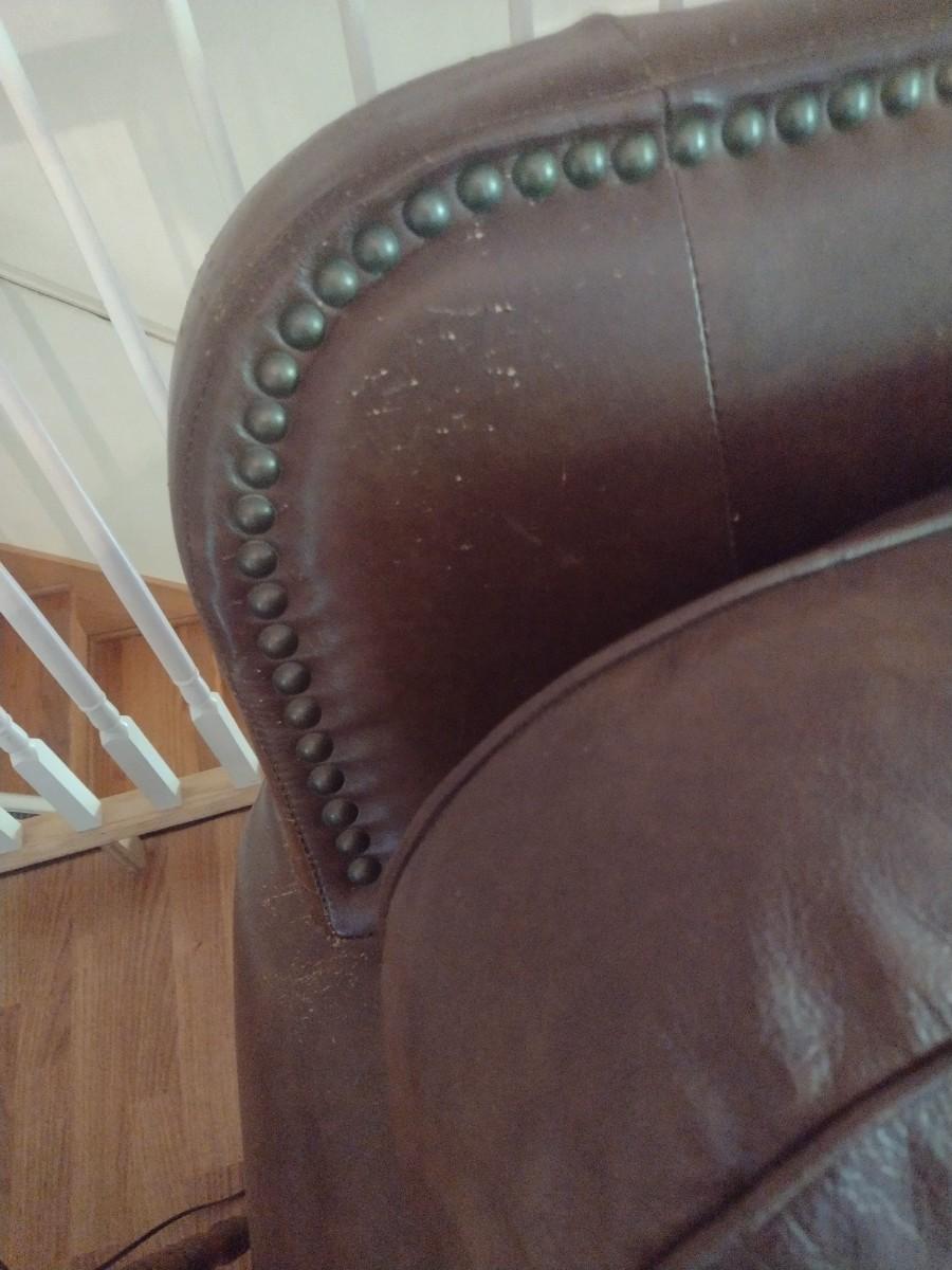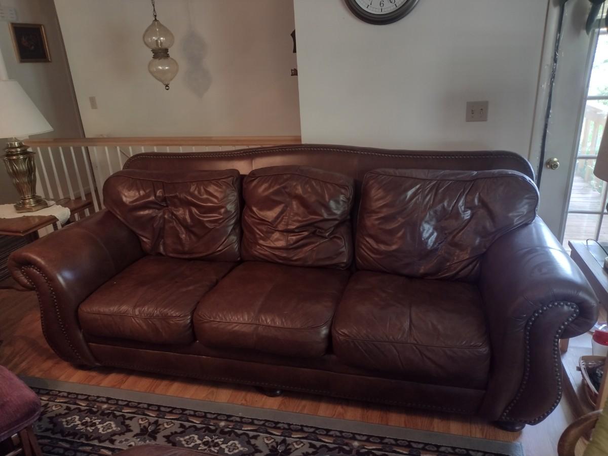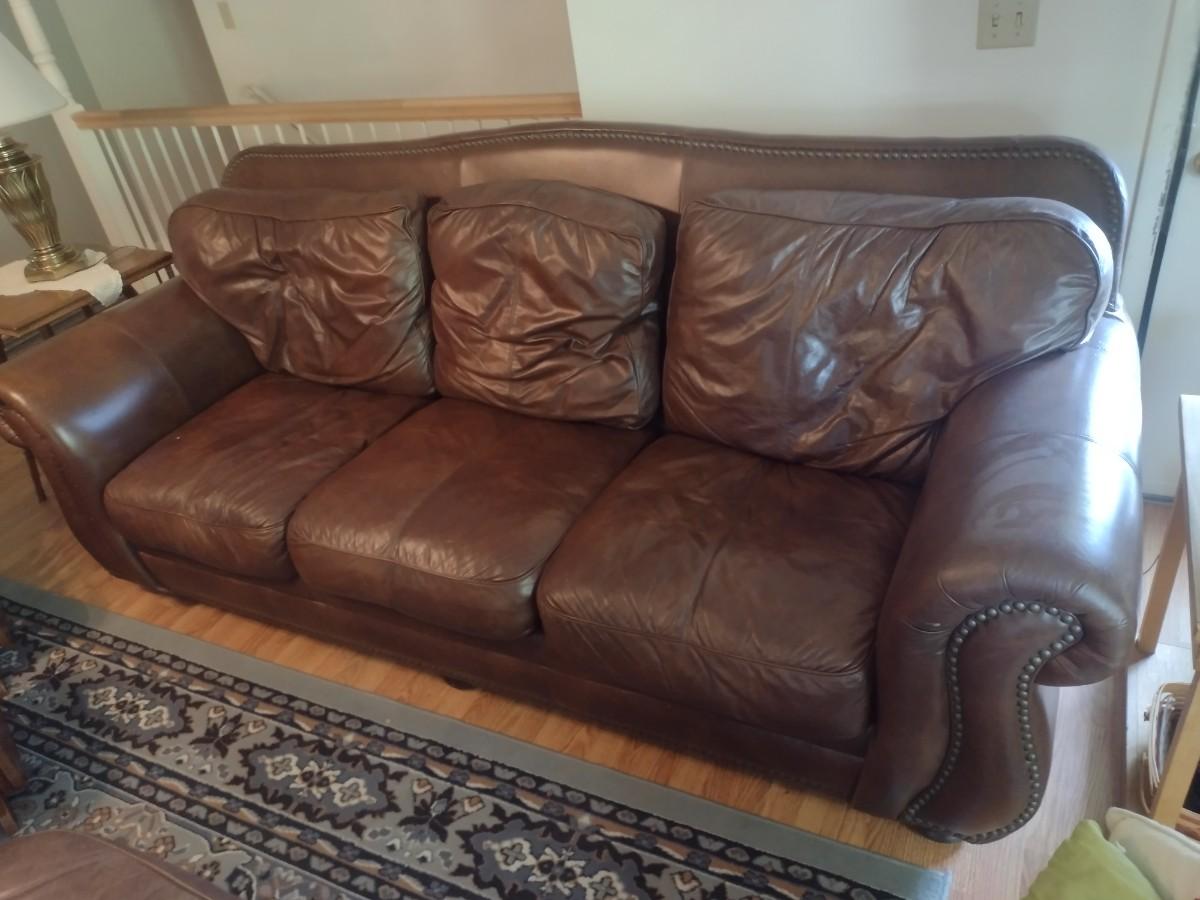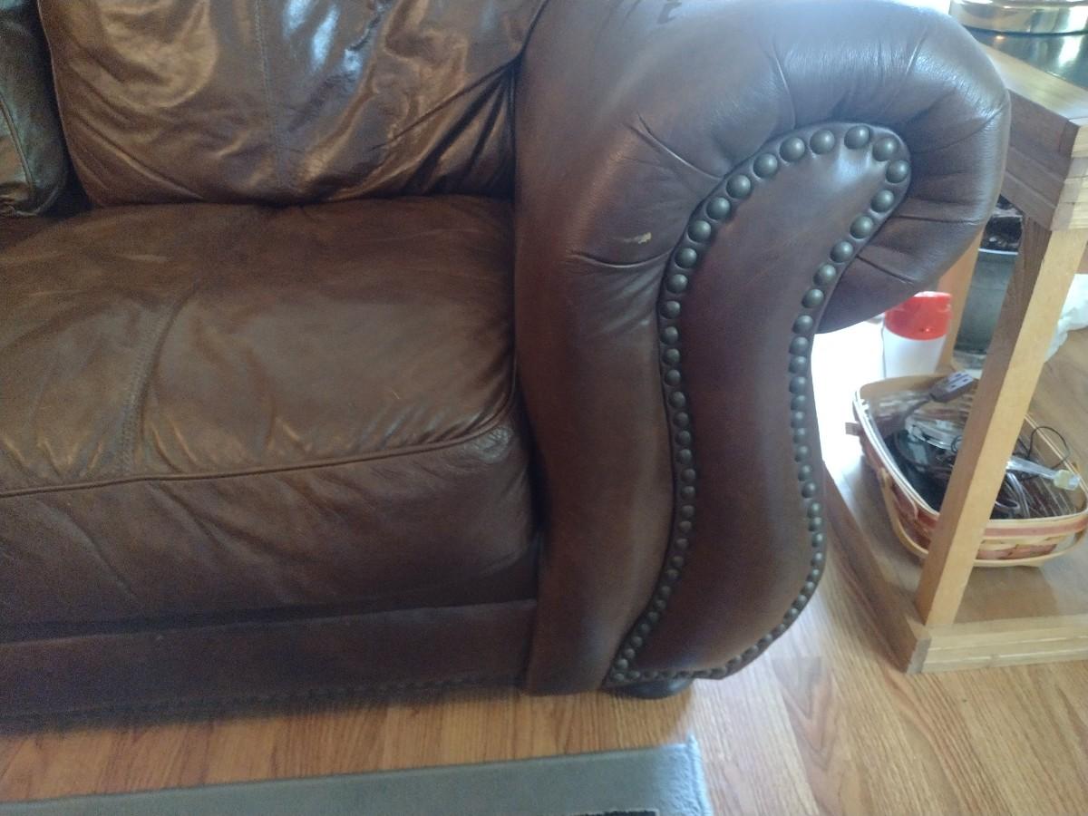 Leather Couch. Has some picks to surface from feline as shown.