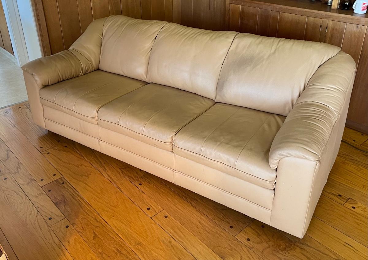 Off White Leather Couch Three Person Sofa from Leather Factory. In good condition, light signs of use. *PICK UP IN ARCADIA SATURDAY MARCH 25TH BETWEEN 9am & 11am*