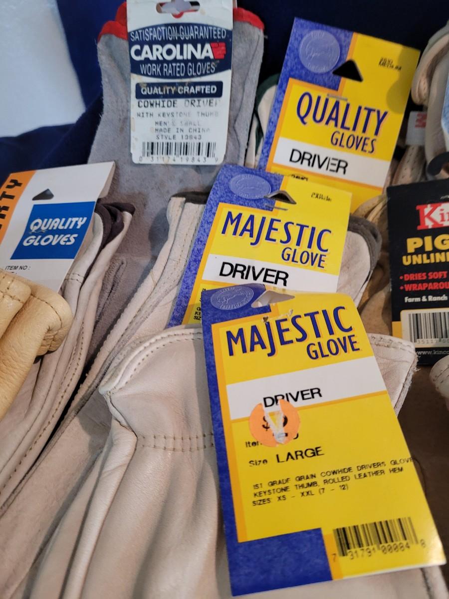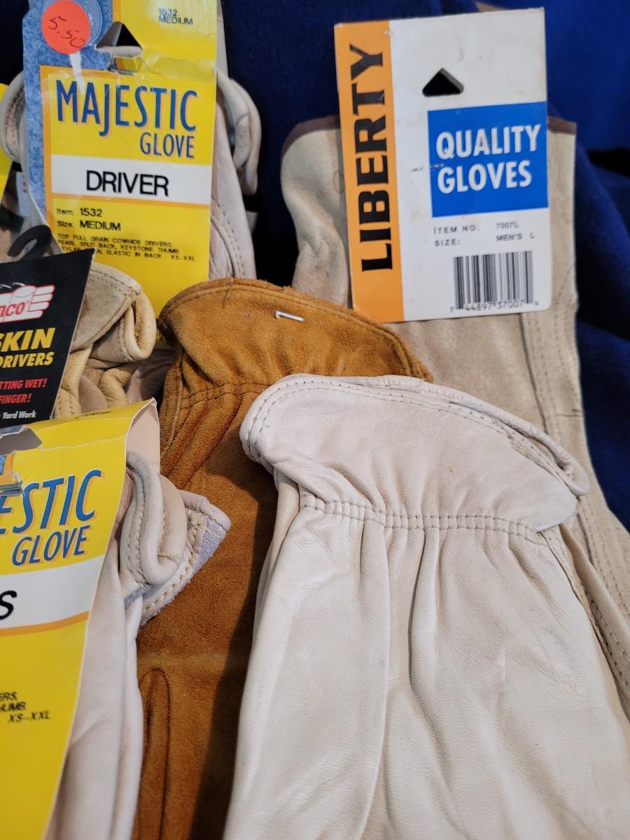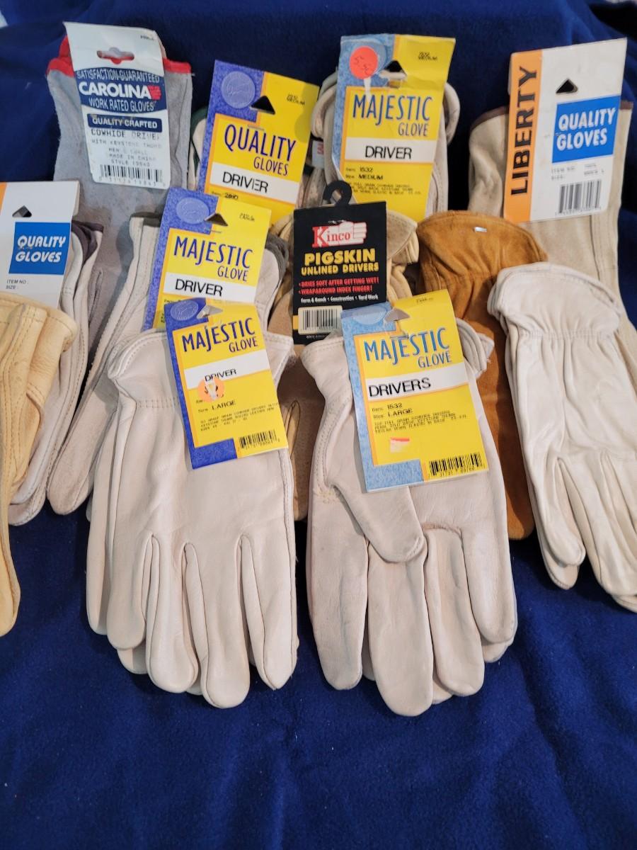 Leather driver gloves 12r Assorted leathers & sizes. New but shelf worn.