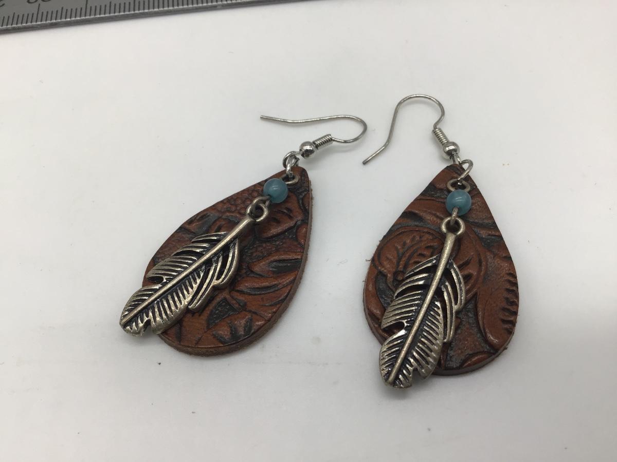 Leather Feather Earrings