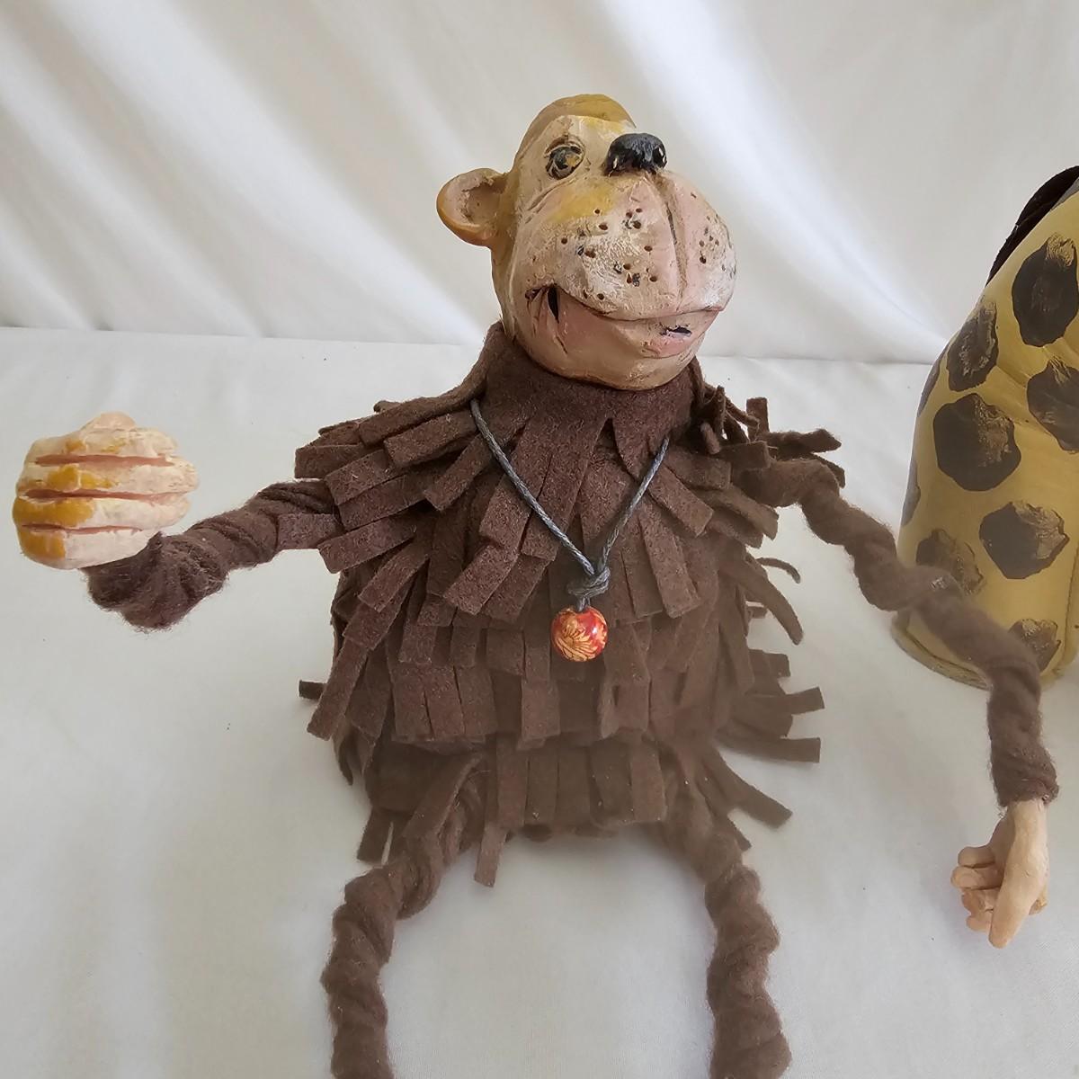 Sandy Vohr Leather Zoo Giraffe & Felt Sculpted Monkey (LR-JS)
