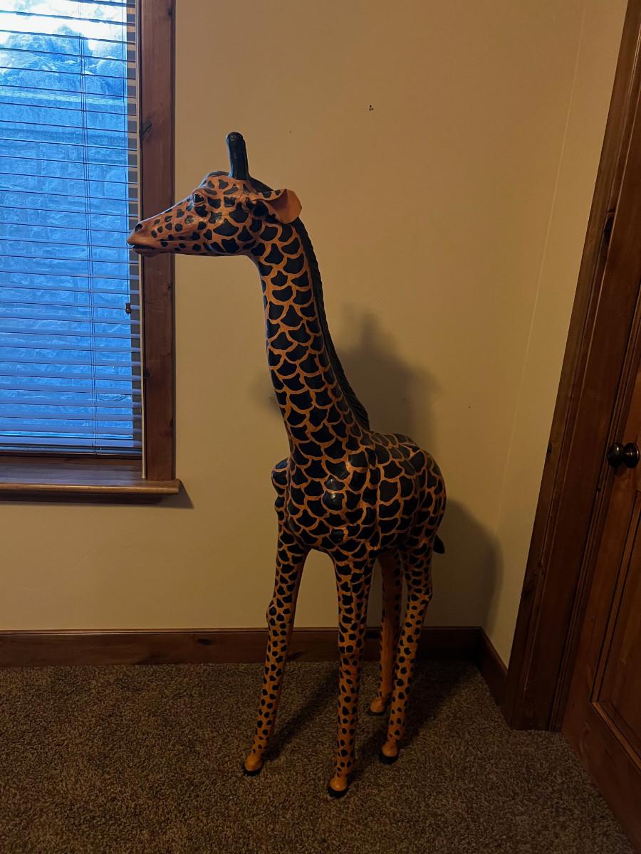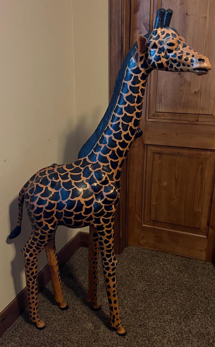 Artisan made all leather 63" tall giraffe figurine. Excellent condition. One of a kind!!!