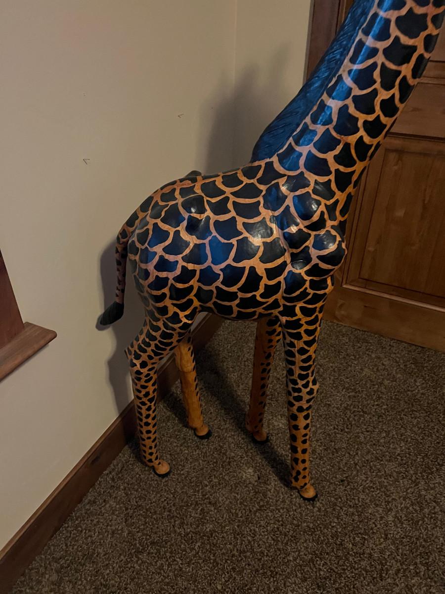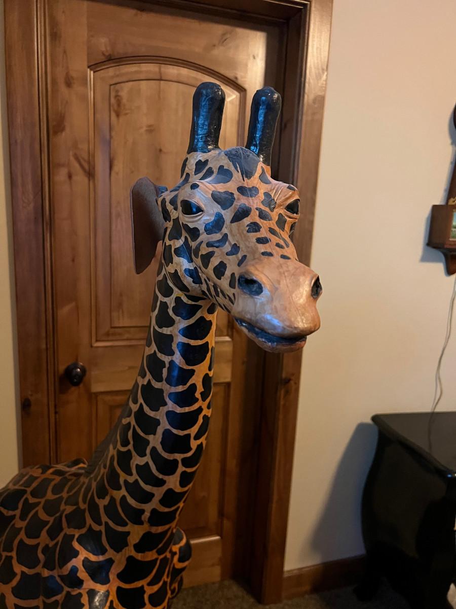 Artisan made all leather 63" tall giraffe figurine. Excellent condition. One of a kind!!!