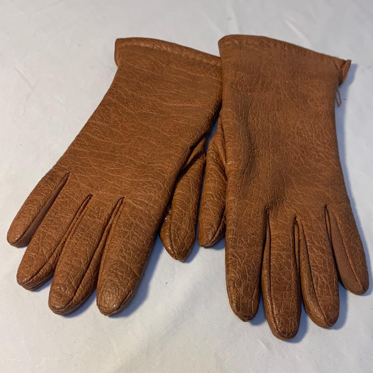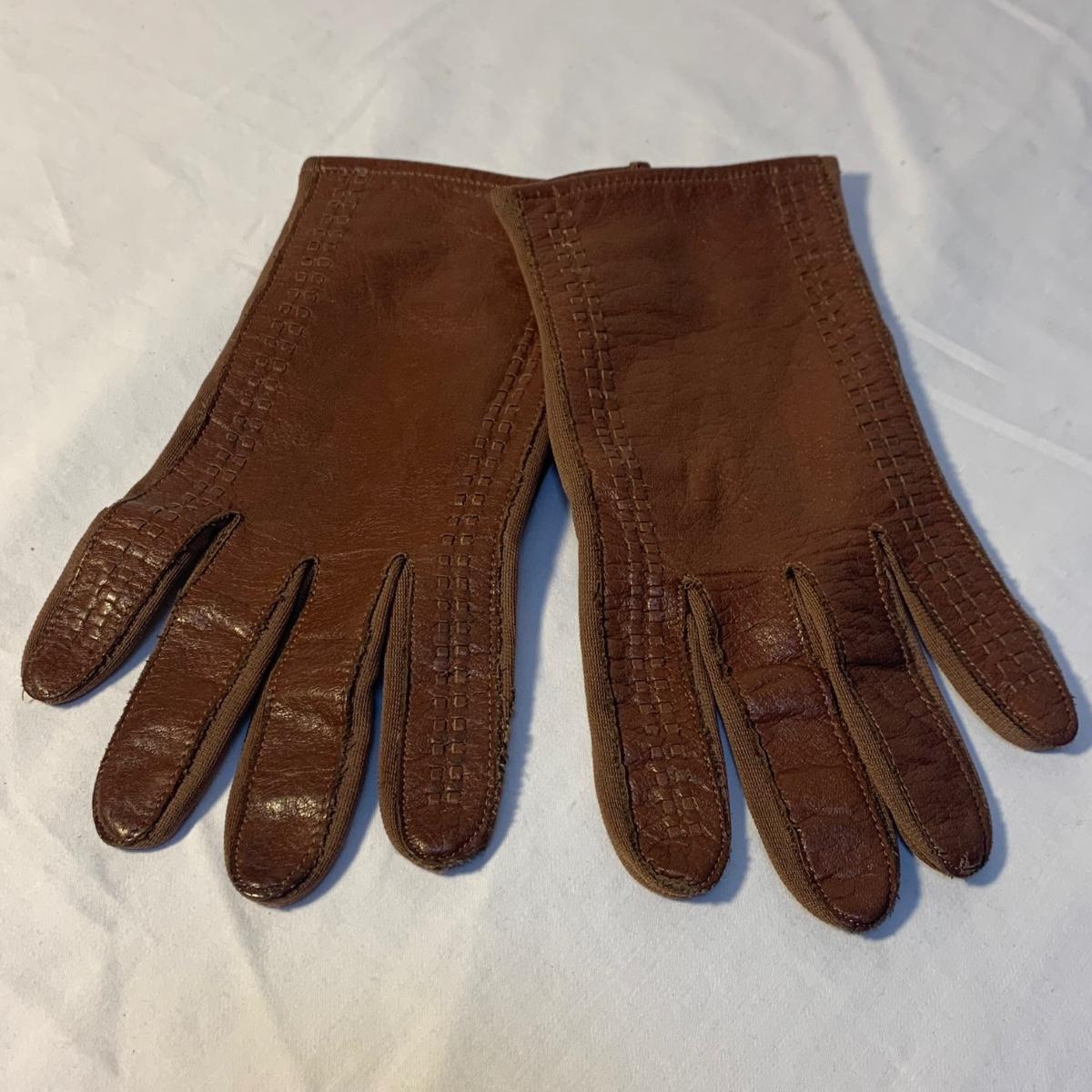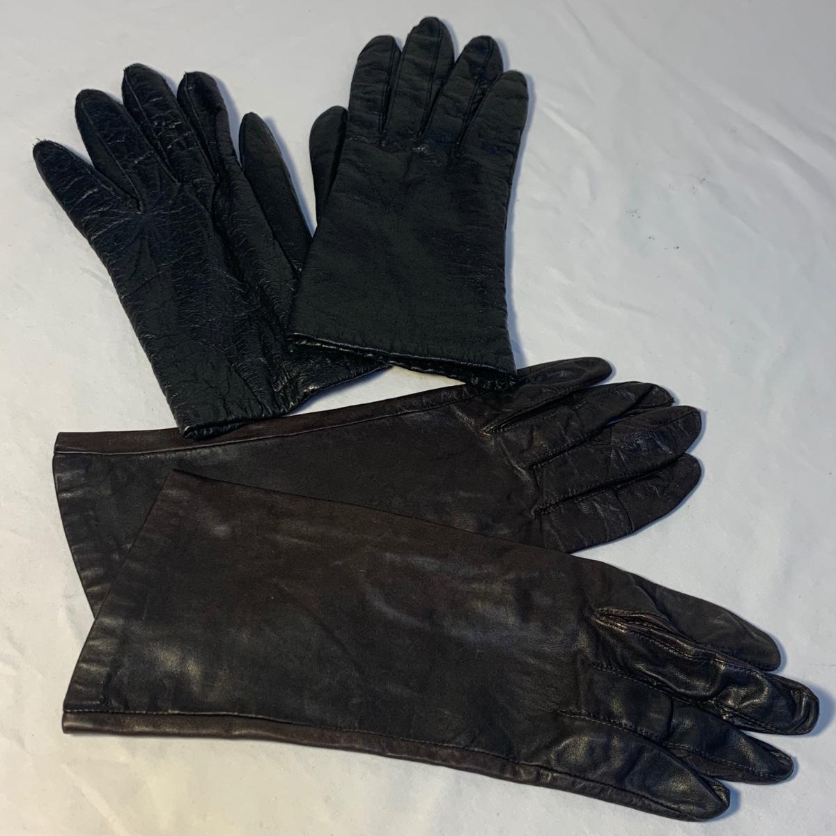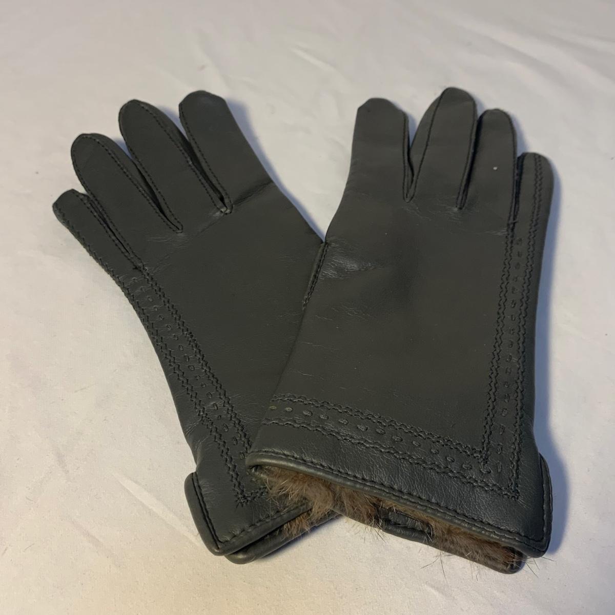 12 pairs of gloves, mostly leather or leather-like. Gloves fit mostly like a women’s size small or medium. Three leather wallets also are included. The red wallet is Etienne Aigner brand and is new with its tag. It has a little smudge on it that appears to be cleanable. It is approximately 7.5” x 4”. A couple items have wear; see photos.