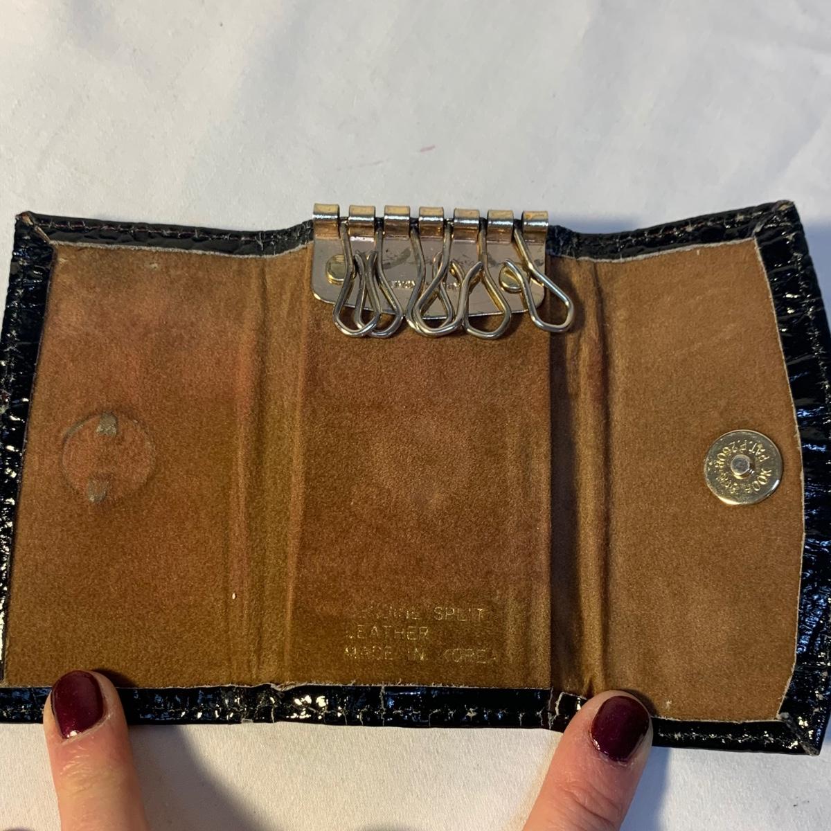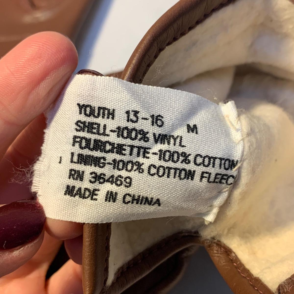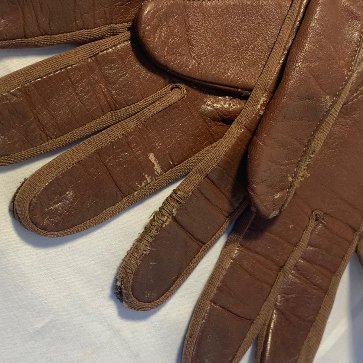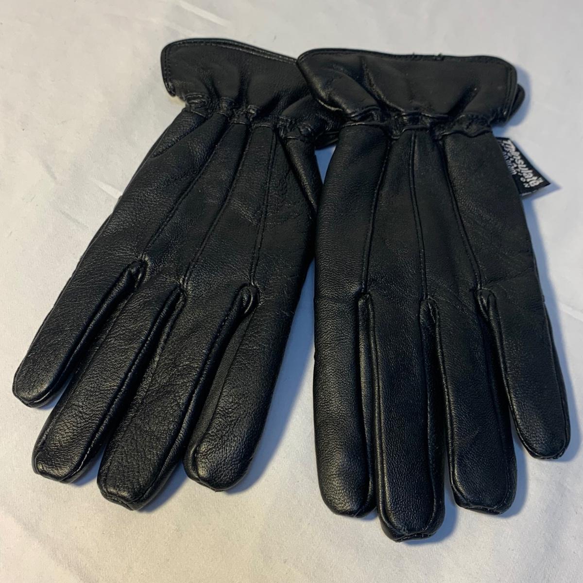 12 pairs of gloves, mostly leather or leather-like. Gloves fit mostly like a women’s size small or medium. Three leather wallets also are included. The red wallet is Etienne Aigner brand and is new with its tag. It has a little smudge on it that appears to be cleanable. It is approximately 7.5” x 4”. A couple items have wear; see photos.