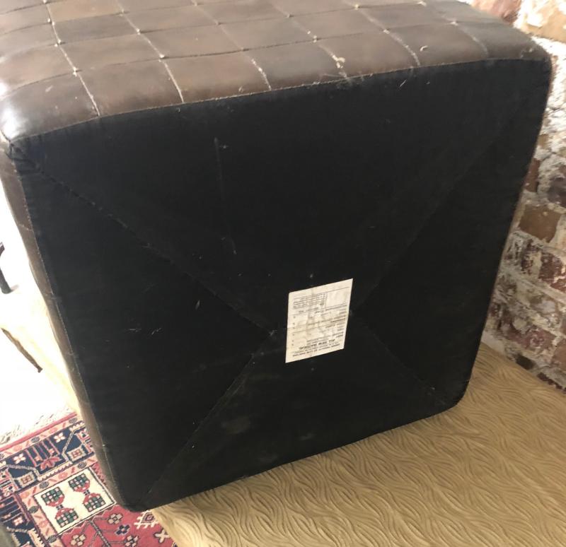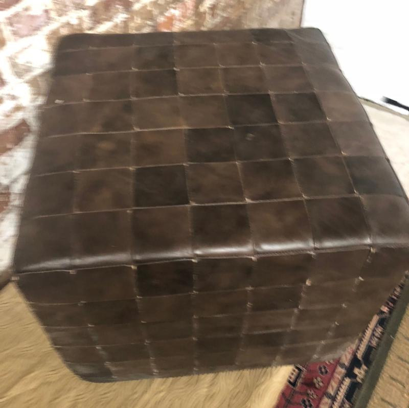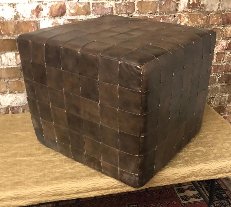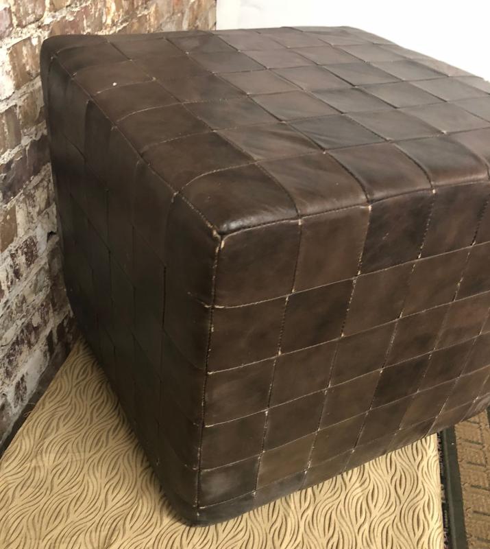 Here is a vintage leather hassock or ottoman..as shown..some use...21" square...