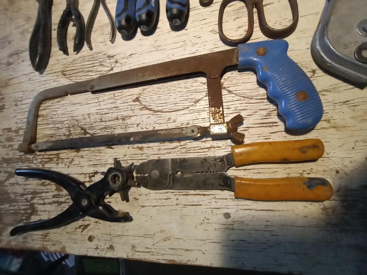 LEATHER HOLE PUNCH-HANDSAW-PLIERS AND MORE