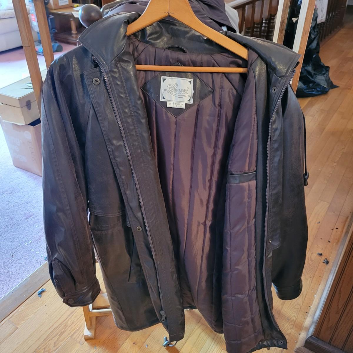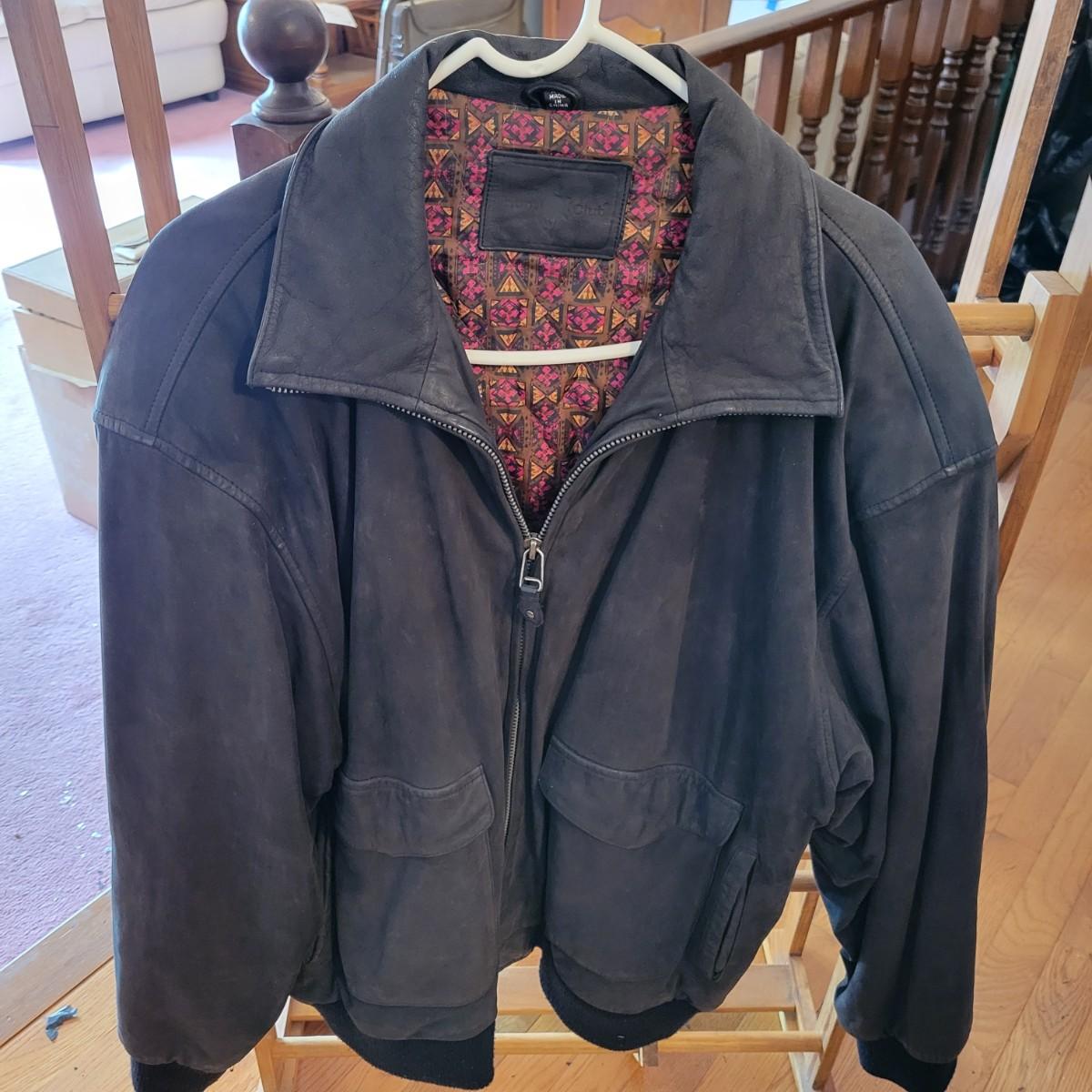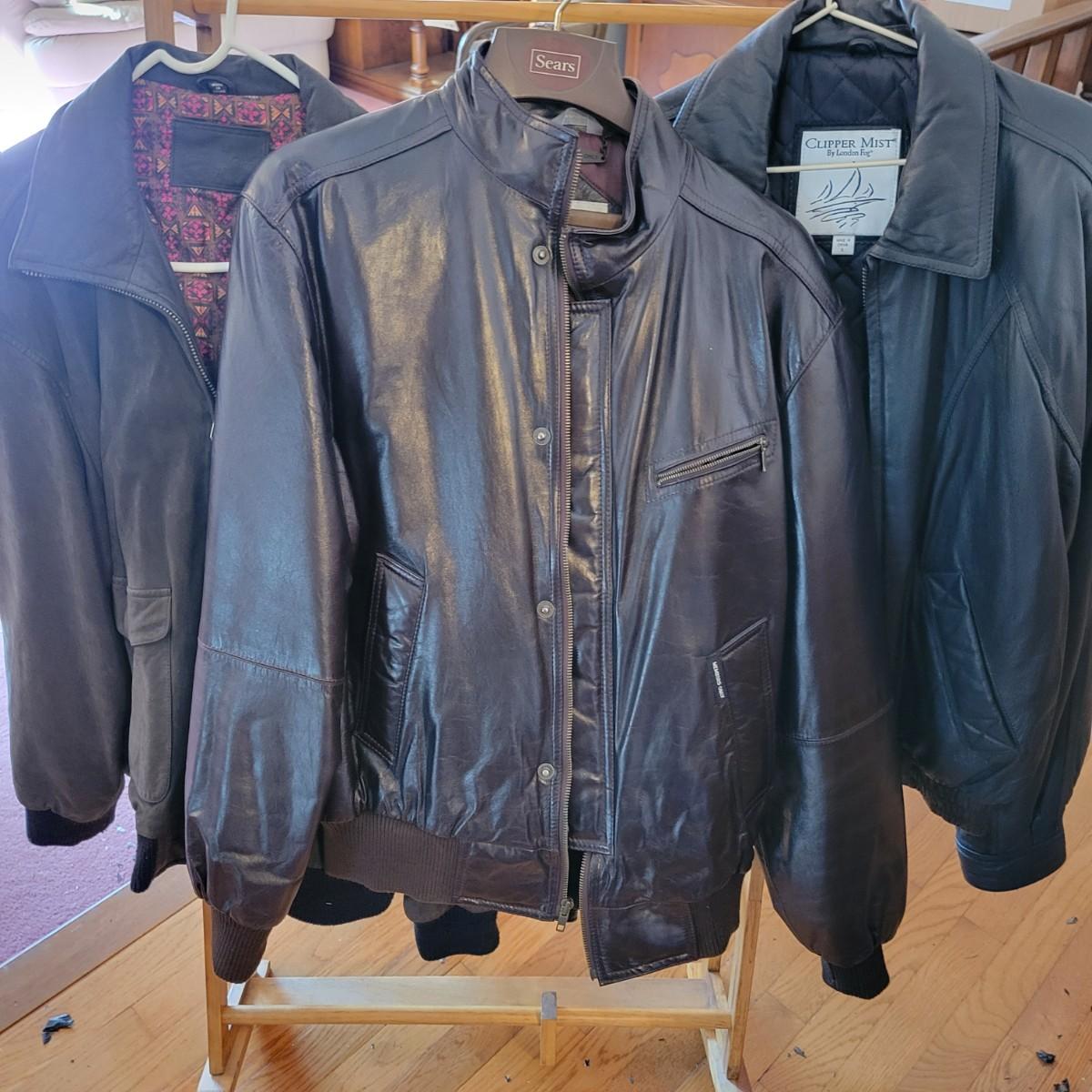 Three leather jackets with no notable damage. Manufacturers include Members Only, Hunt Club and London Fog. Sized from M to XL. Local pickup only