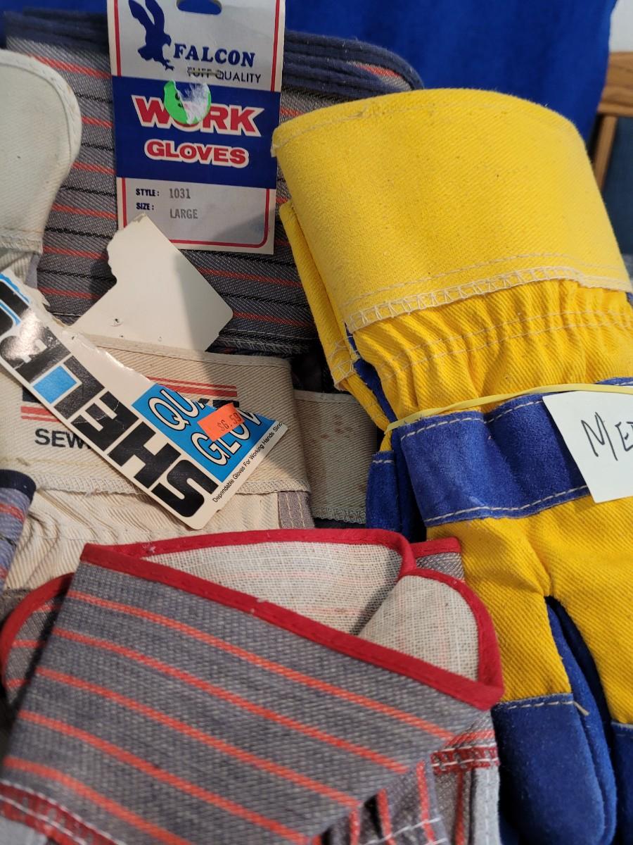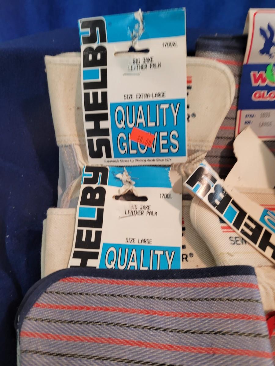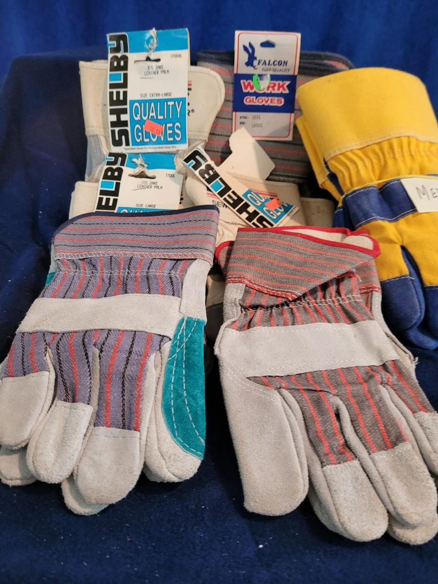7pr Leather palm canvas work gloves assorted styles and sizes New but shelf worn