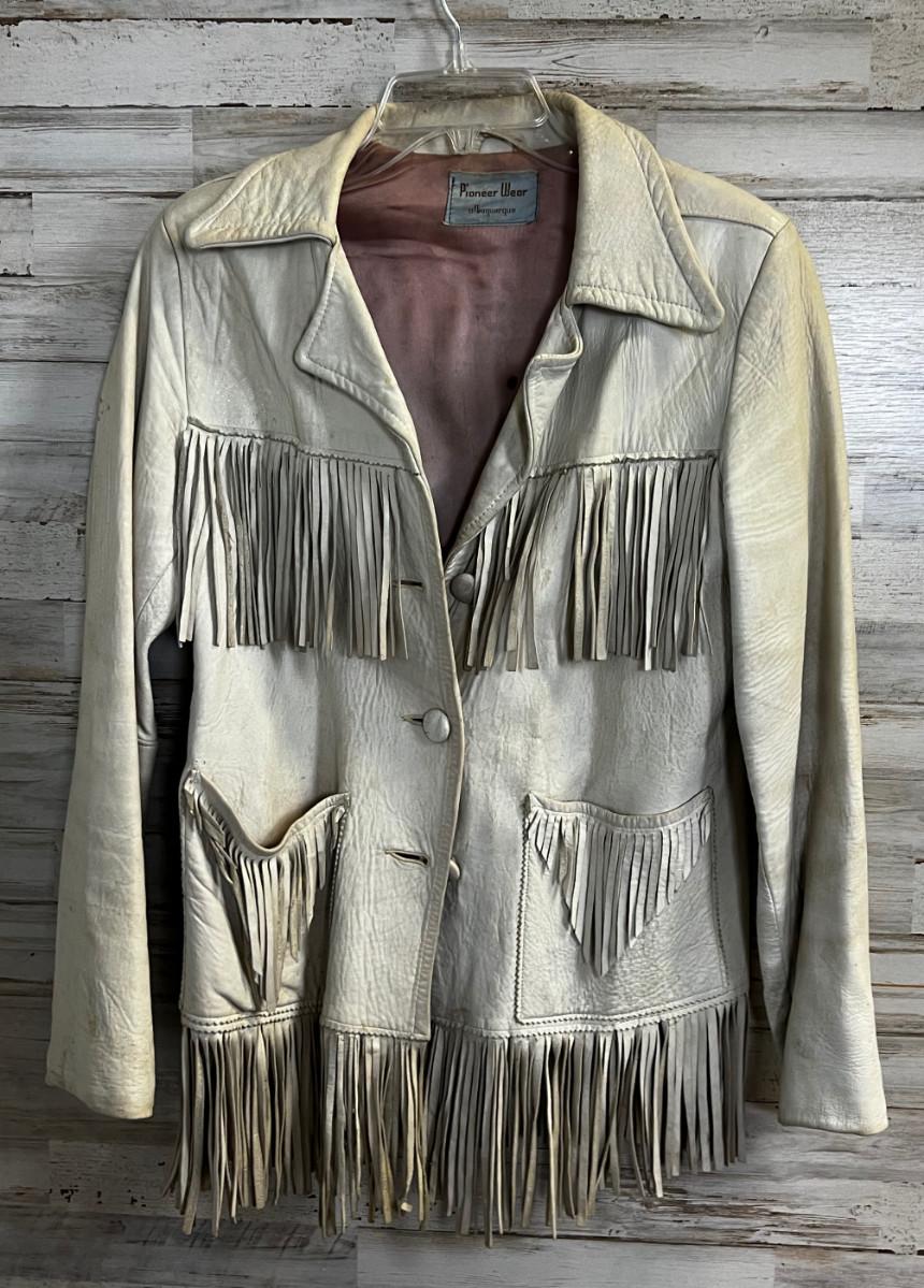 Leather Pioneer Coat White Leather Fringe Woman's, Albuquerque NM