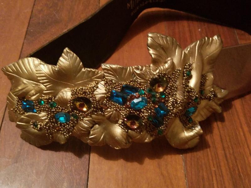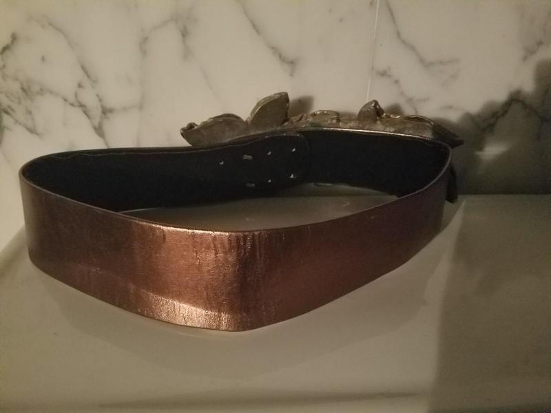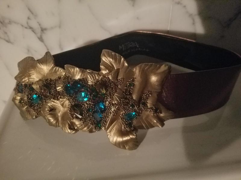This one is truly a work of wearable Art. Made by famous Italian designer Mitra and signed by her. The resin is carved into a Stuning design in copper .