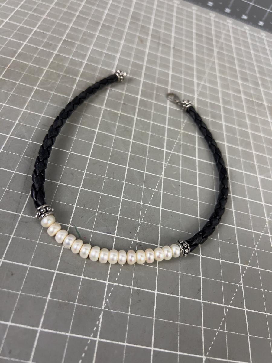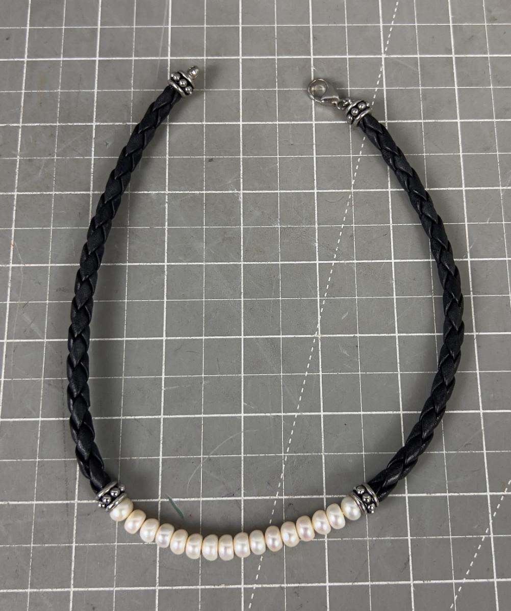 Leather, Silver and Pearl Necklace