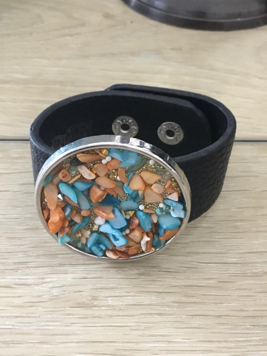 Leather stone fashion snap on bracelet