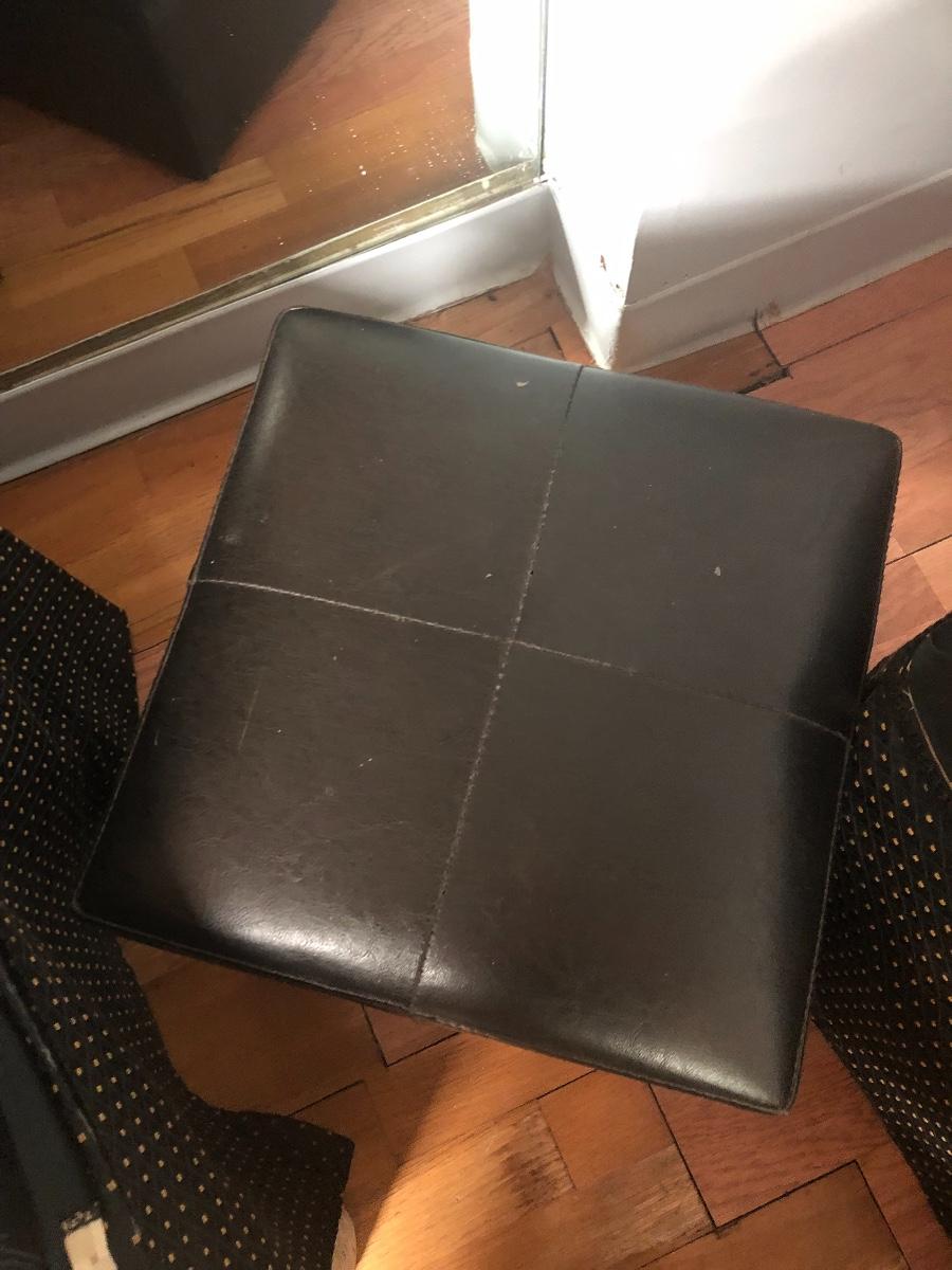 These two leather pieces are in excellent condition. Large one opens for storage and measures 18 x 18 x 18. The smaller one measures 13 x 13 x 13