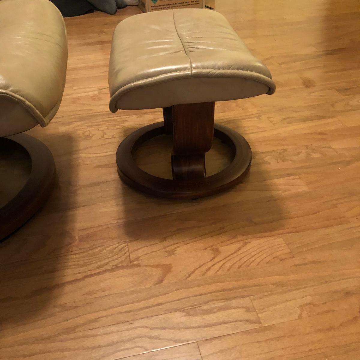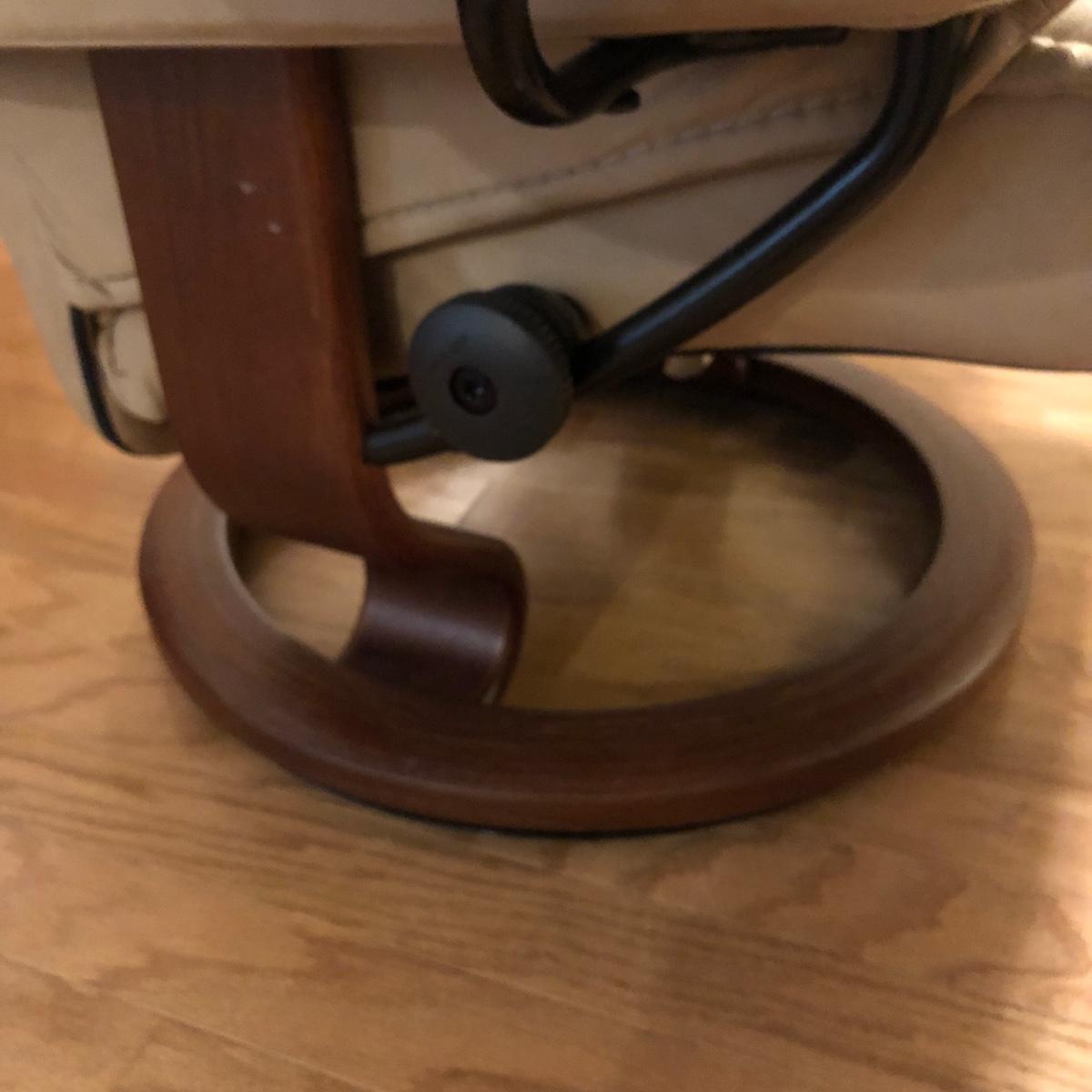 Ekornes Leather Swivel Chair with Foot Stool-Made in Norway. (LR-KM)