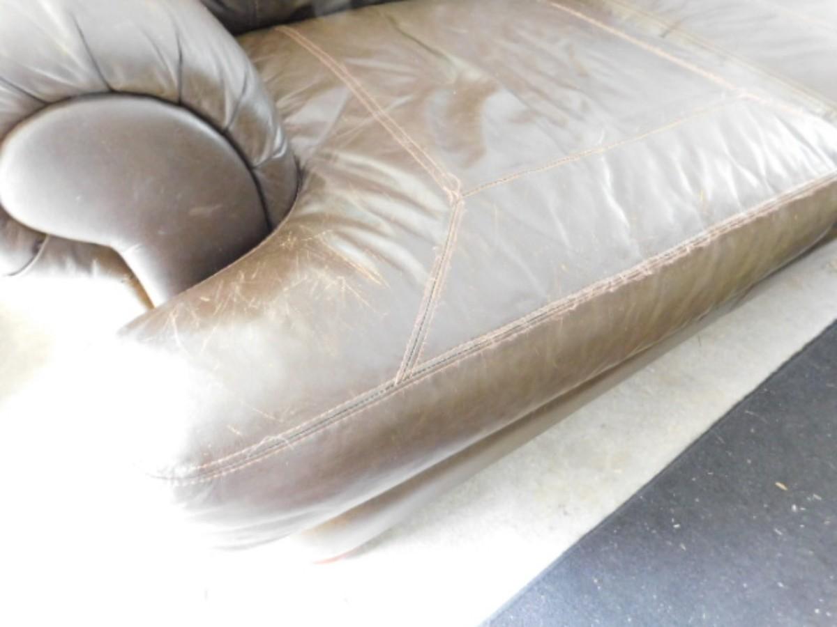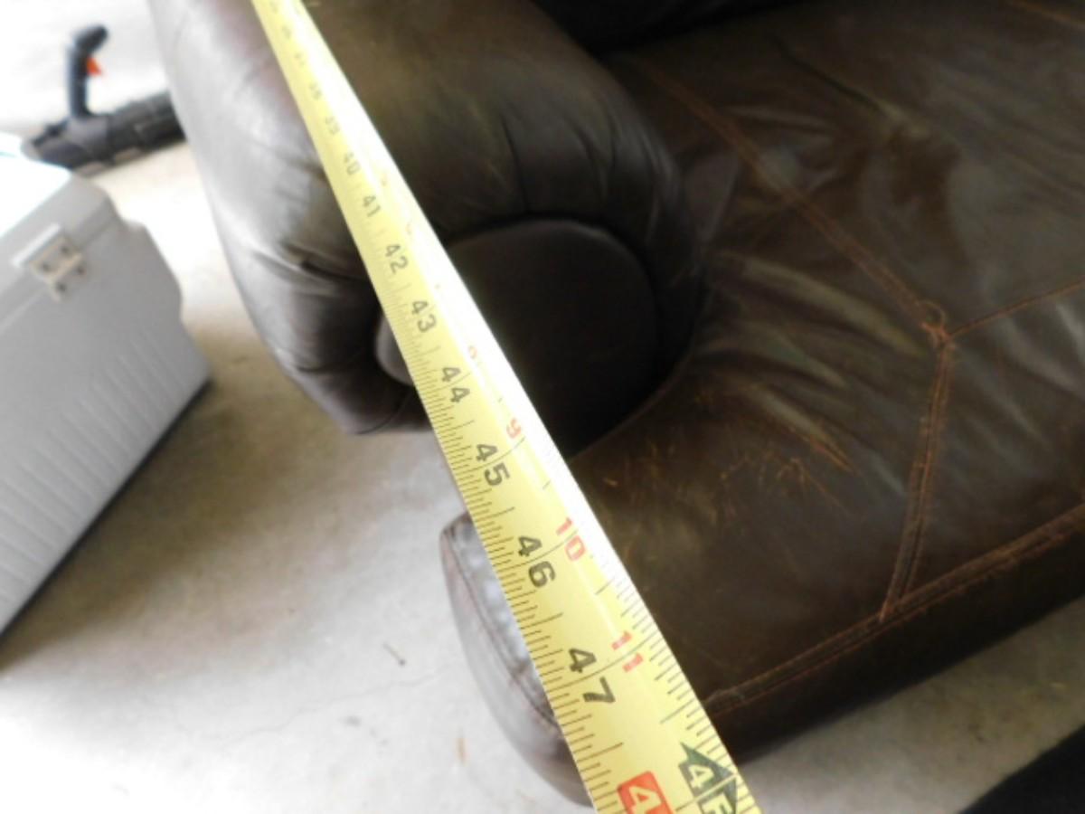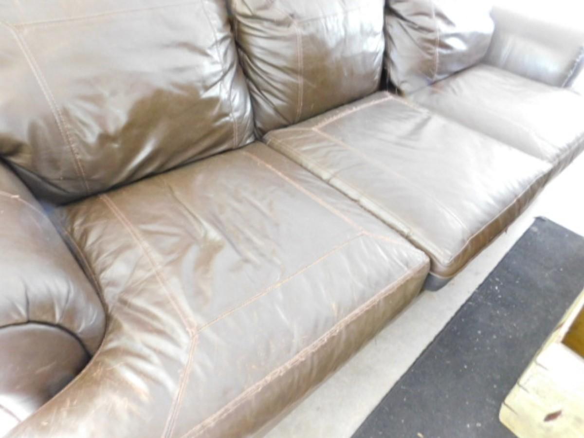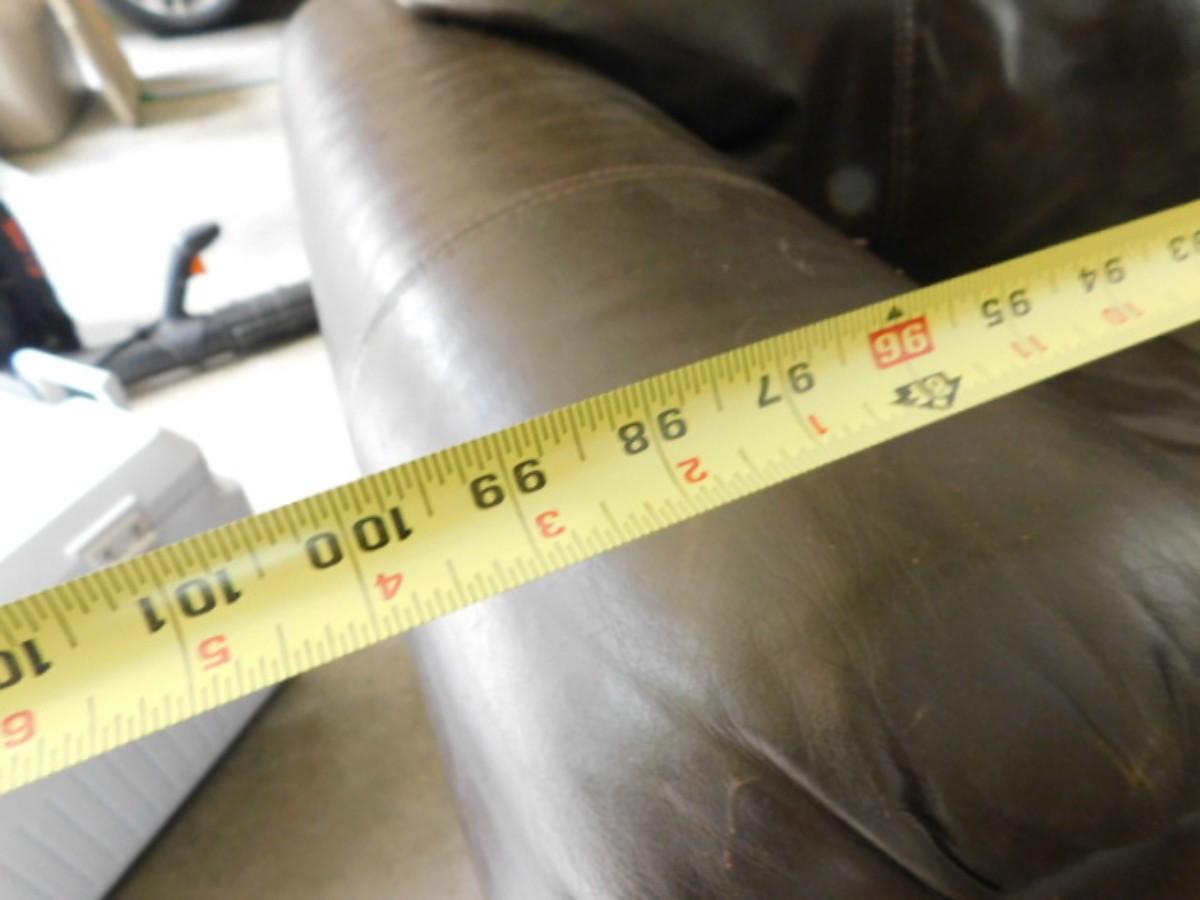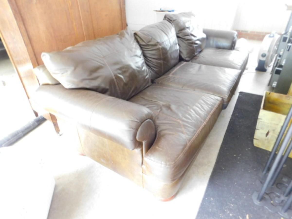 Leather Three Cushion Couch by Distinctions Collection has some scratches and wear. Easy access and very close to drive for removal.
