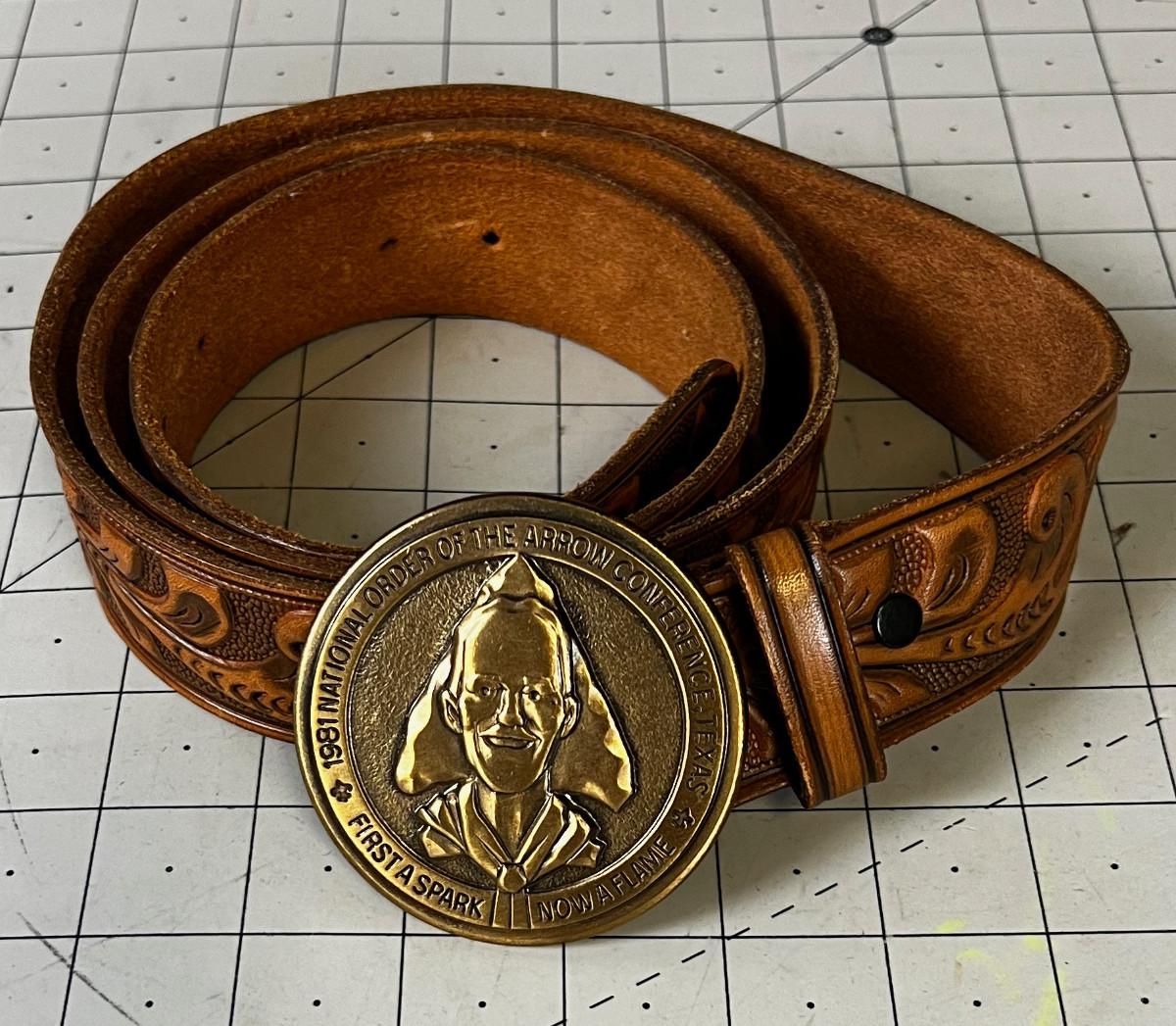 Leather tooled Belt and Boy Scout Order of the Arrow Buckle