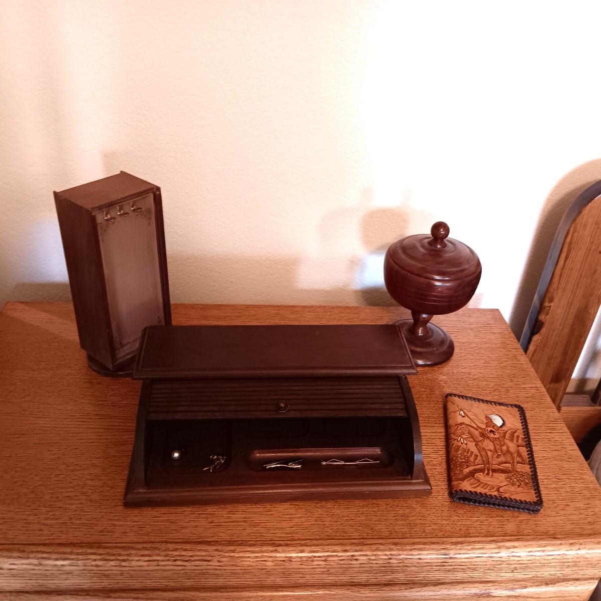 LEATHER TOOLED WALLET AND DRESSER TOP ITEMS TO HOLD YOUR TREASURES