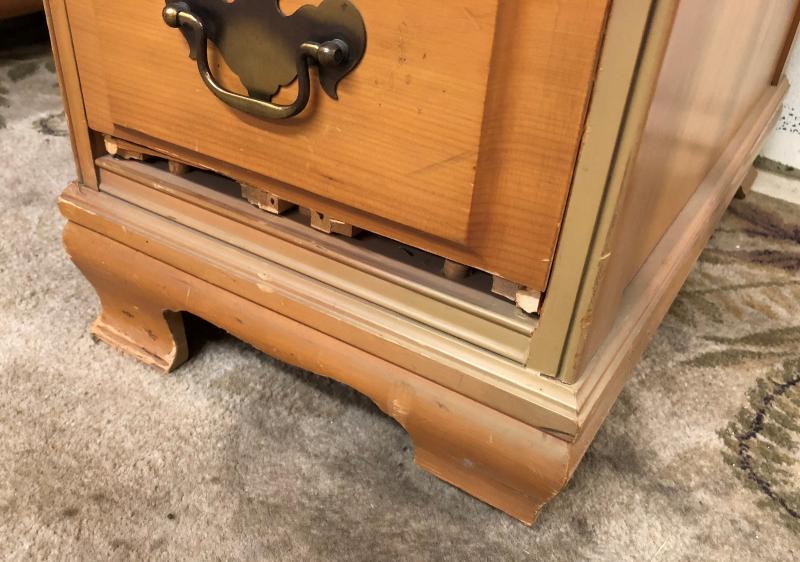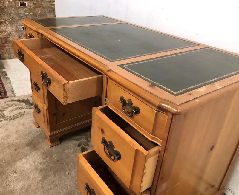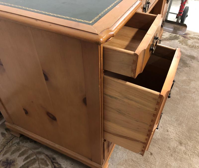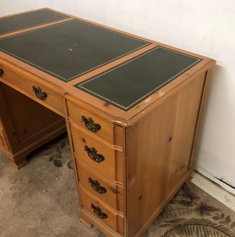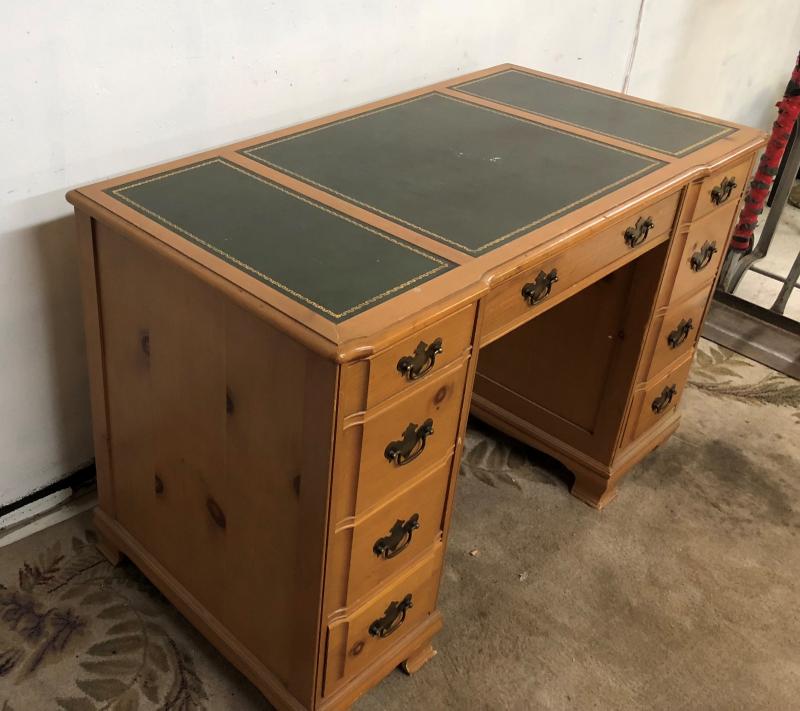 Vintage Colonial leather top desk...needs some repair...bottom trim...46 x 24 x 30"...
