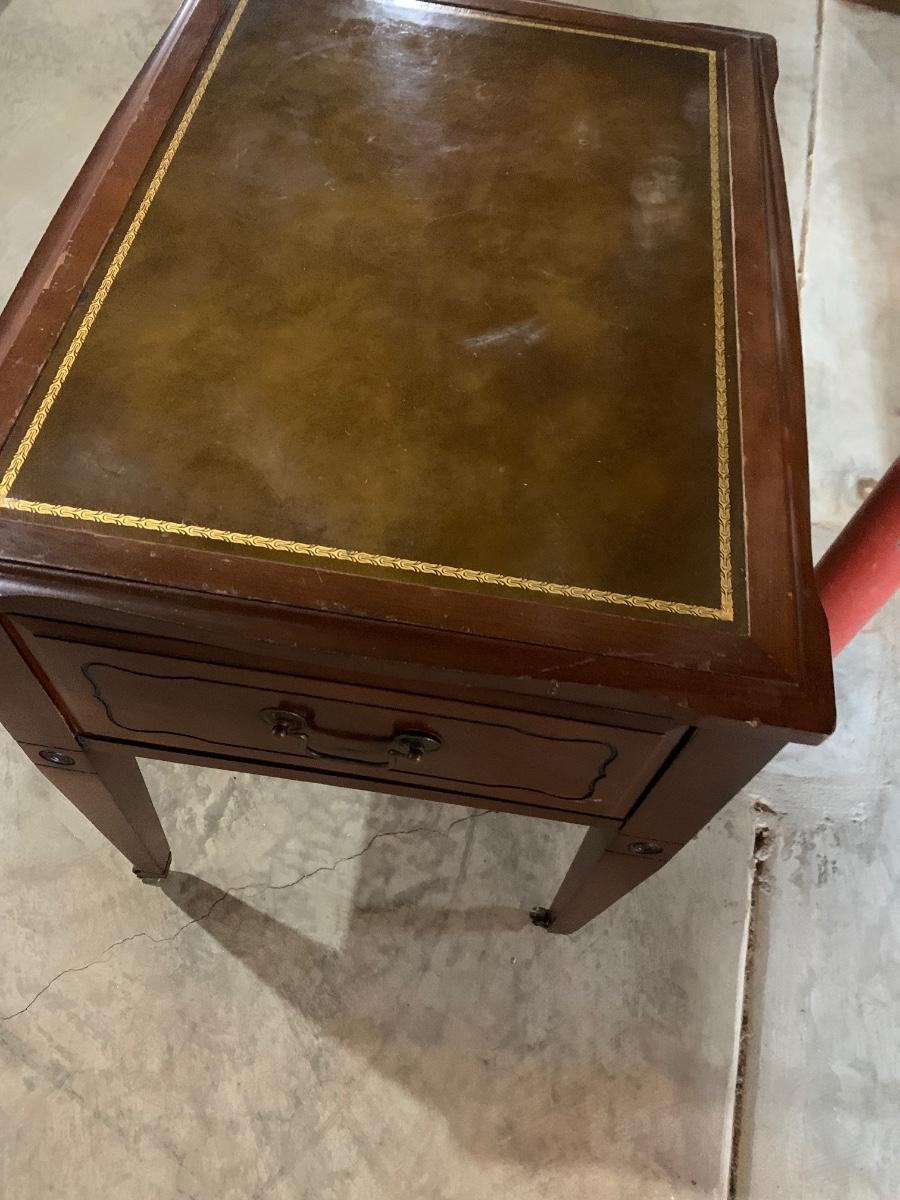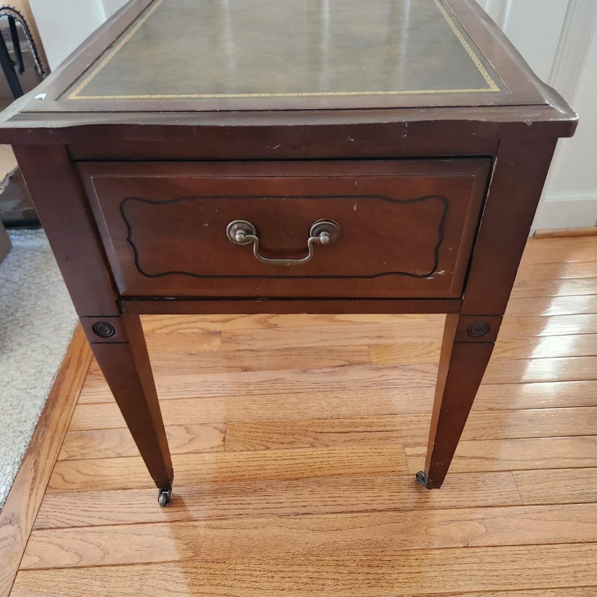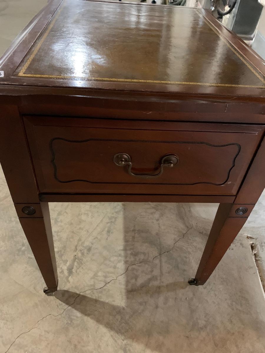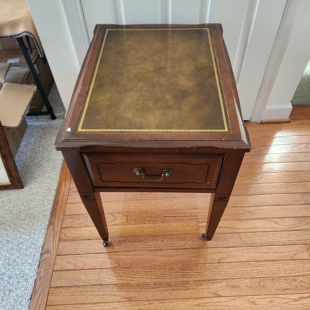 Leather Top End Table on casters