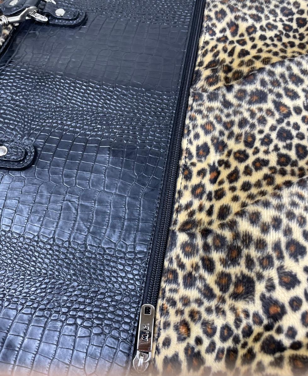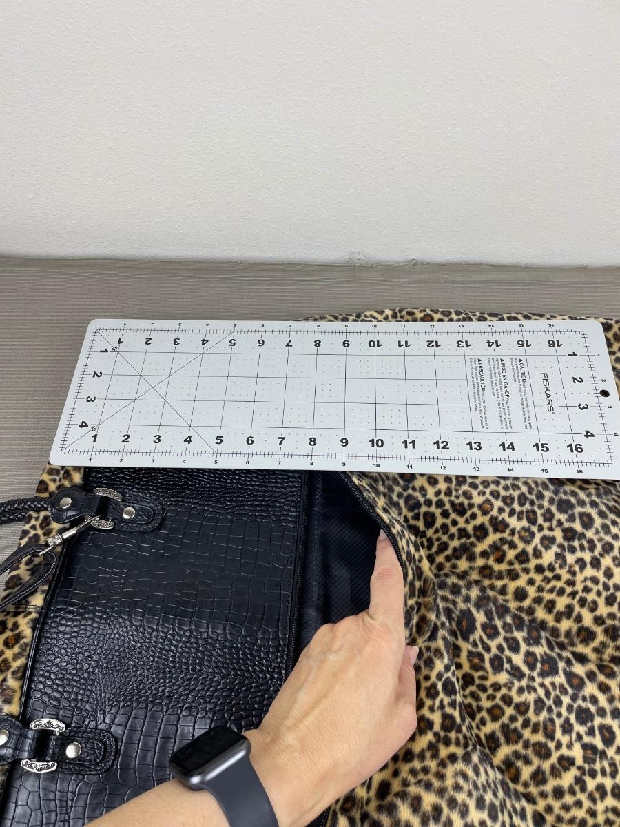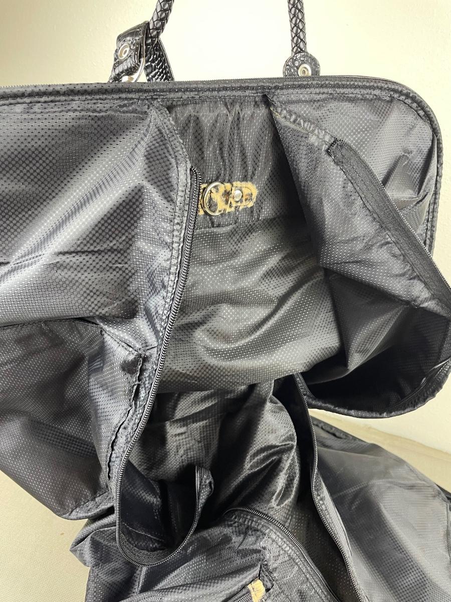 New with tag. 23” wide by 24” long folded. Extended length is 46”. Zippered pockets inside.