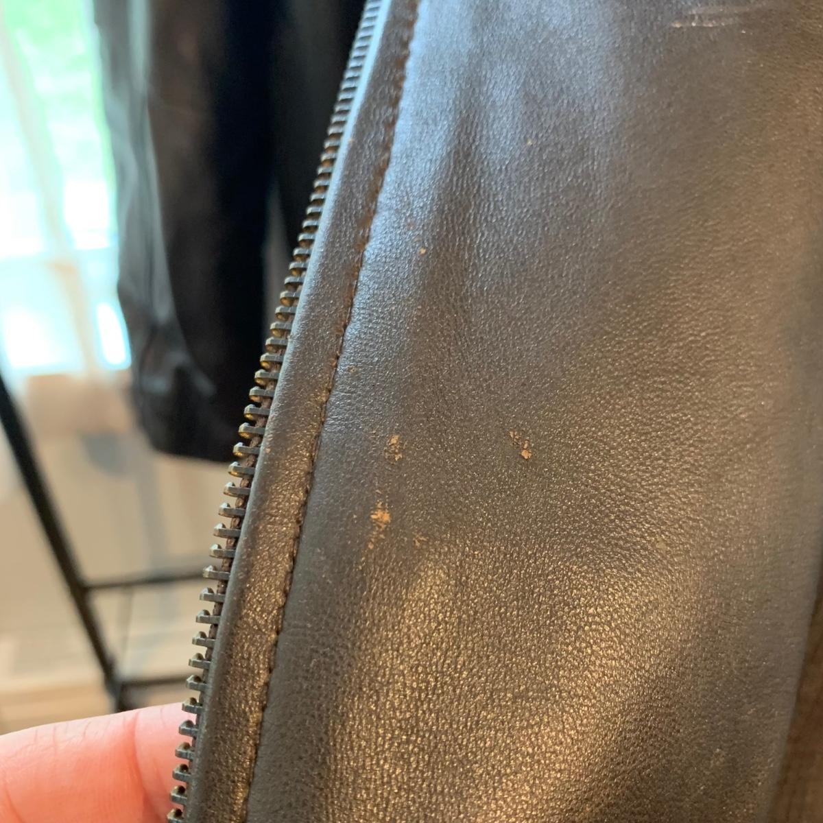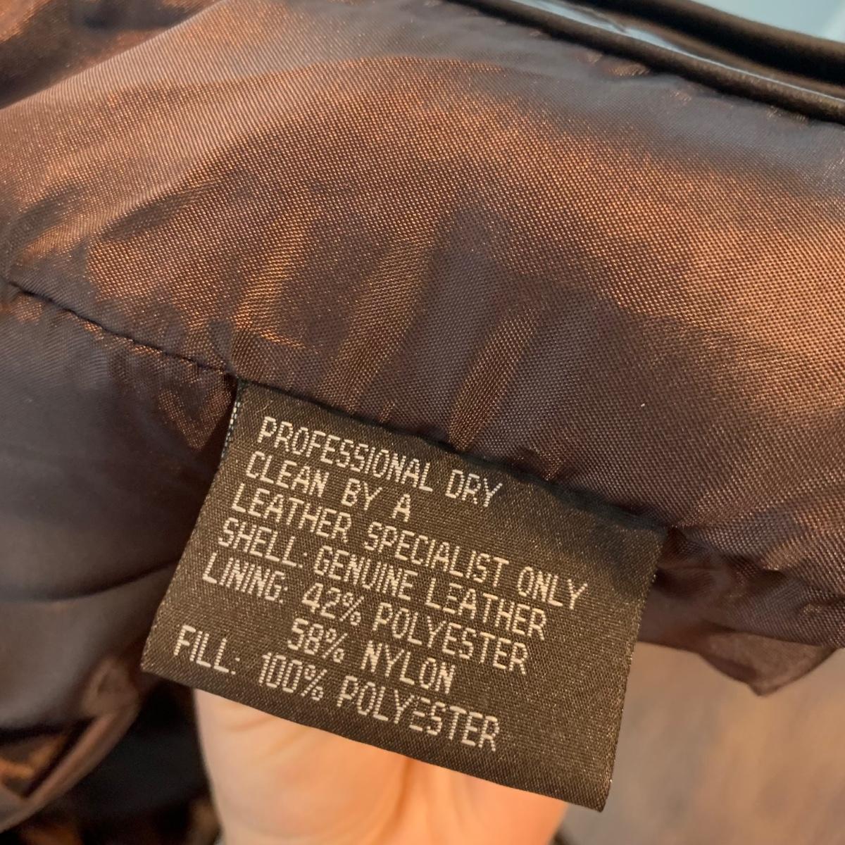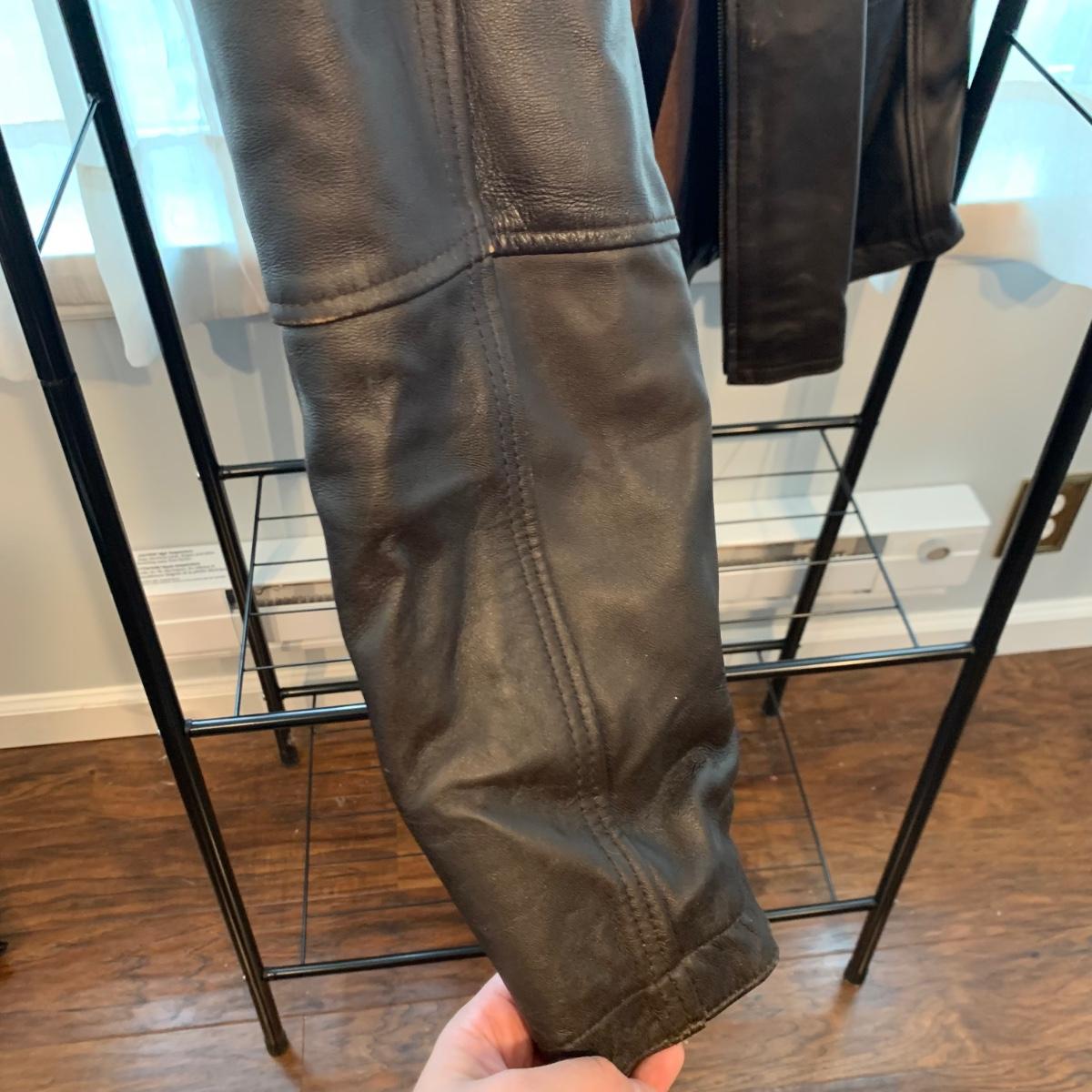 Three men’s leather garments. One brown Scully vest with buffalo nickel buttons, a black Roundtree & Yorke jacket, and a dark brown IZOD jacket. All are size XL. The IZOD has a few scuffs; see photos. Hangers are not included.