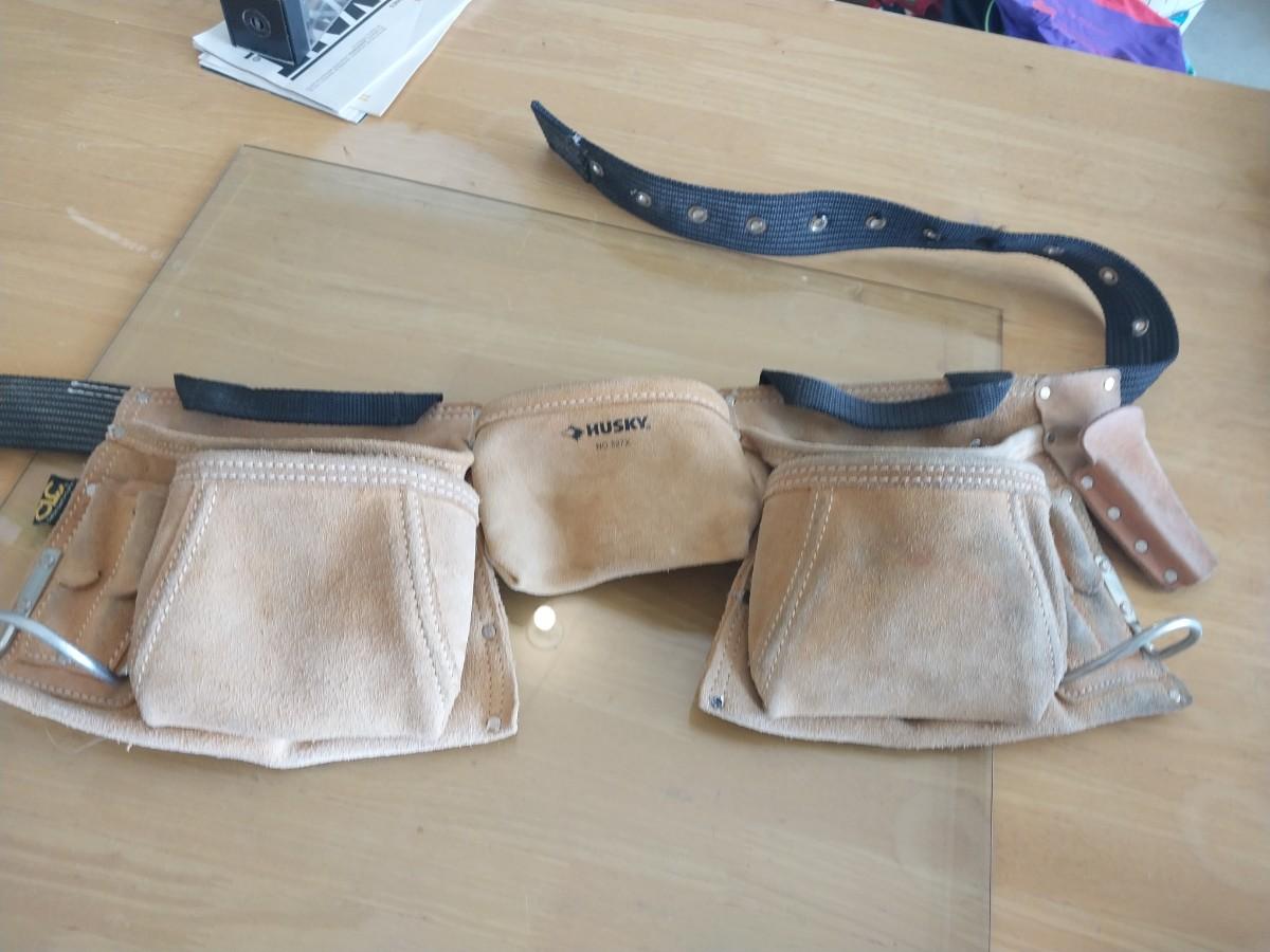 LEATHER WORK BELT- SMALL CLAMPS AND TOOLS