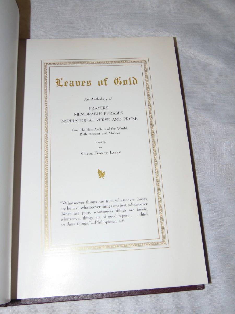 Leaves of Gold - An anthology of Prayers and Prose - Edited by Clyde Lytle, 1948 - printed in 1962
