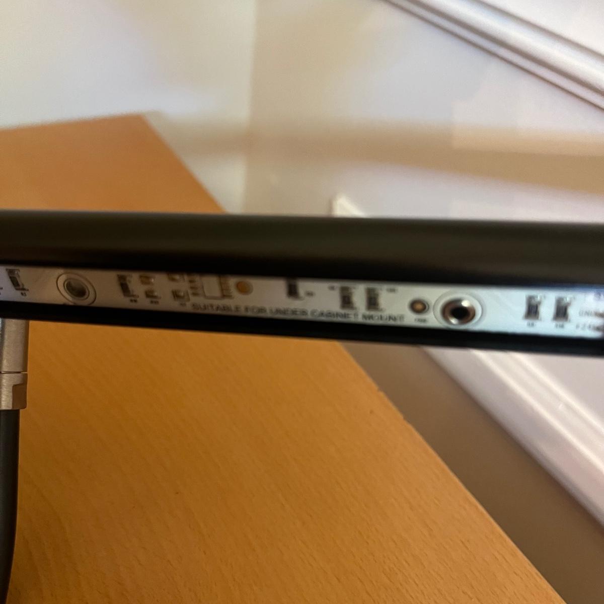 Lot includes a LED piano/office lamp that powered on when plugged in. Lamp measures 5” x 19” x 16”H.