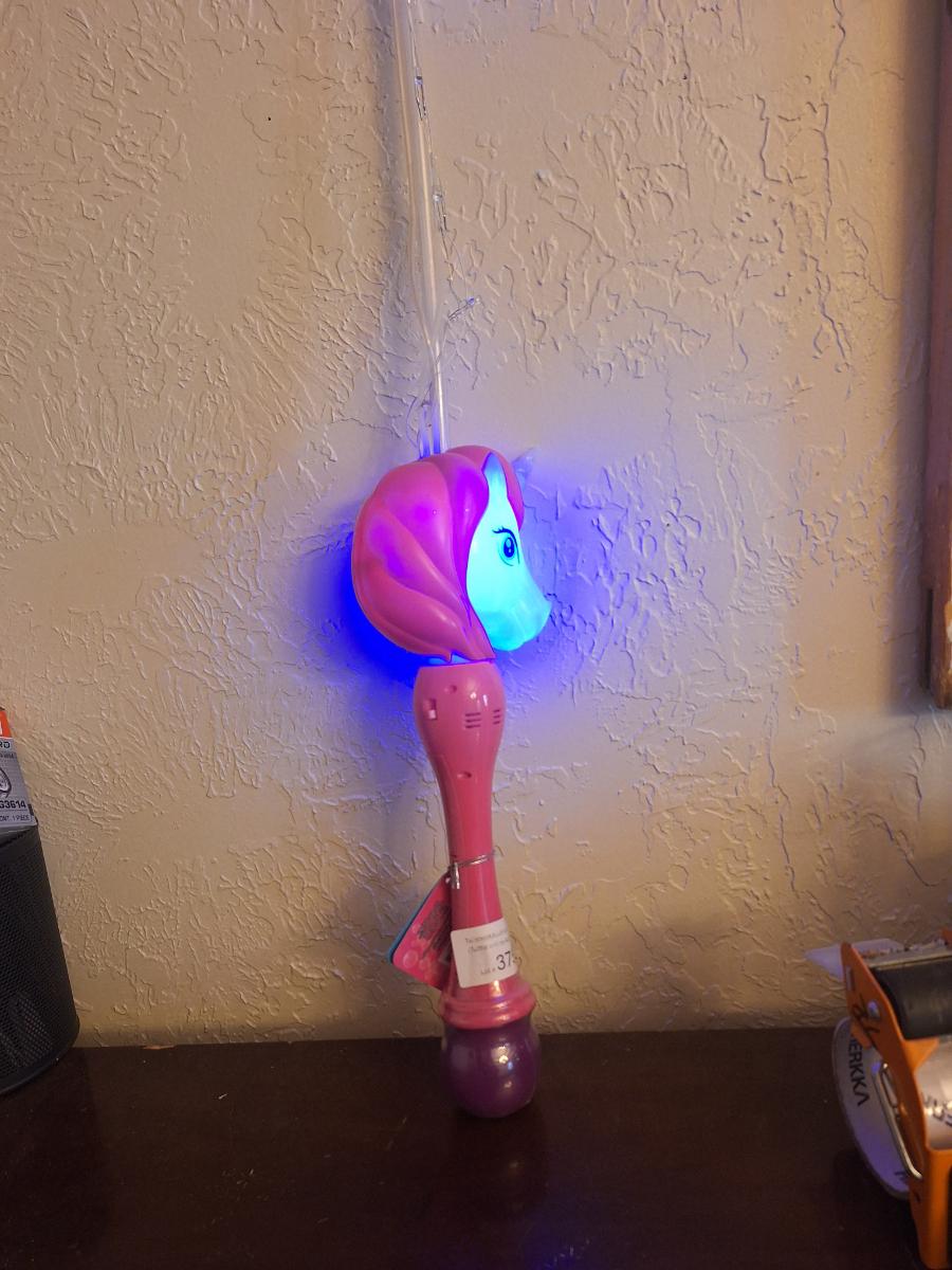 LED unicorn bubble wand- lights up.  Bubbles may not work see desc
