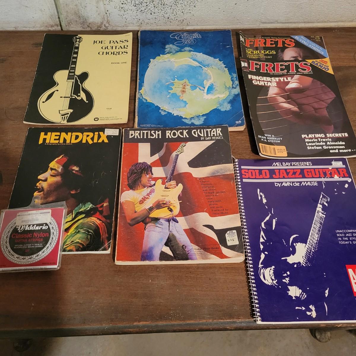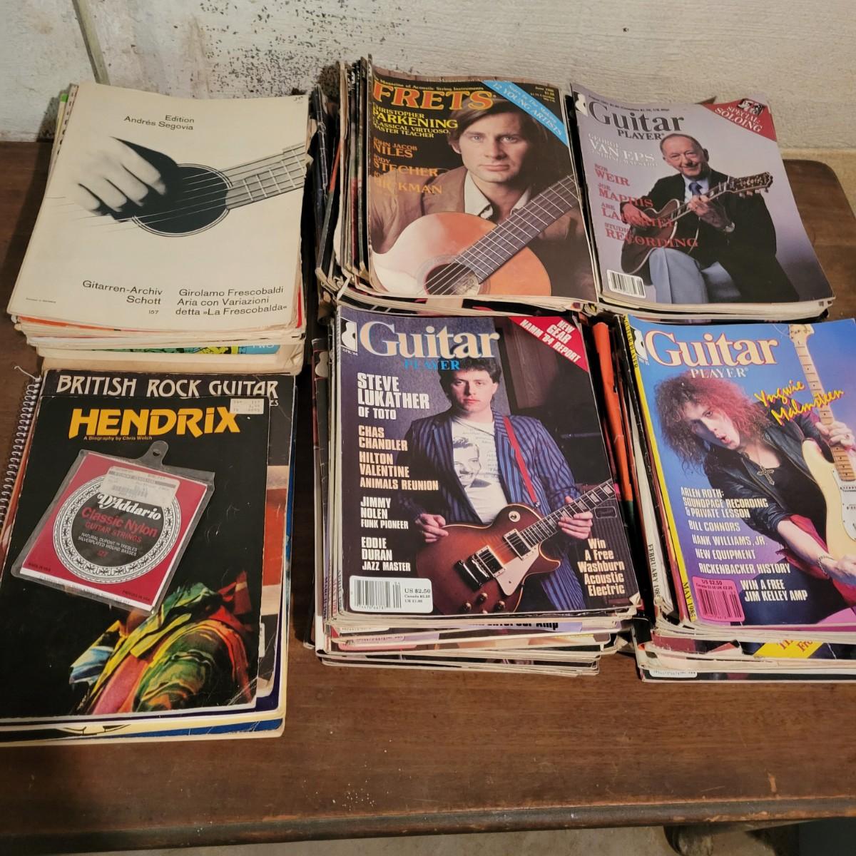 A diverse assortment of guitar sheet music, techniques and magazines from the late 70s to early 80s in good condition. If you love playing guitar, this is the perfect lot for you! Over 80 magazines from the 70s and 80s by Fret, Guitar Player and more. An assortment of books and sheet music ranging from Led Zeppelin to classical guitar technique. Too much to list it all! Shipping available.