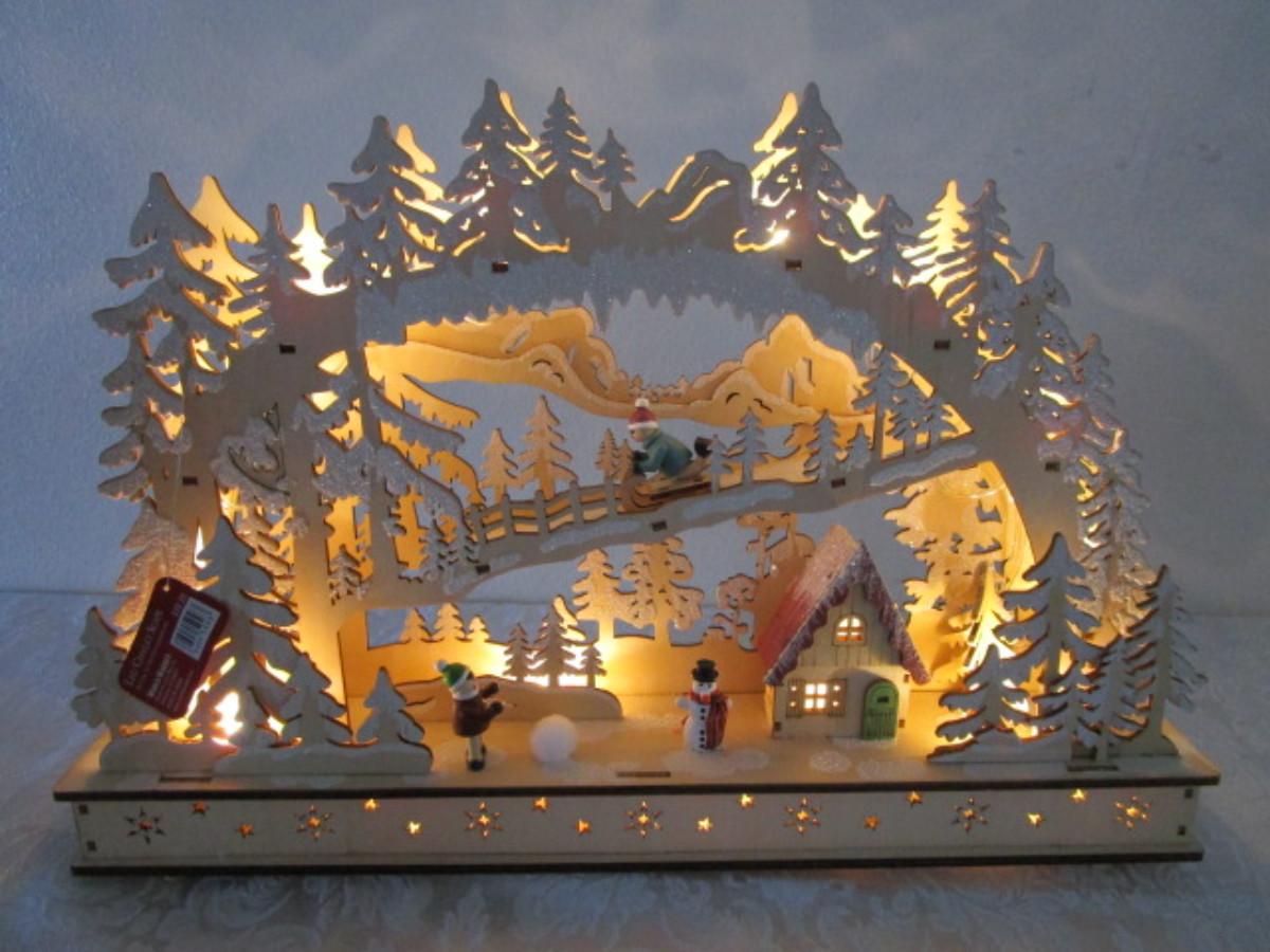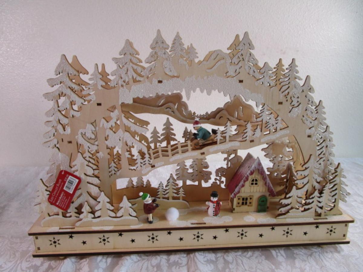 New in box, 17-1/2" long x 11-1/2" tall x 3" wide, takes 2 AA batteries - not included