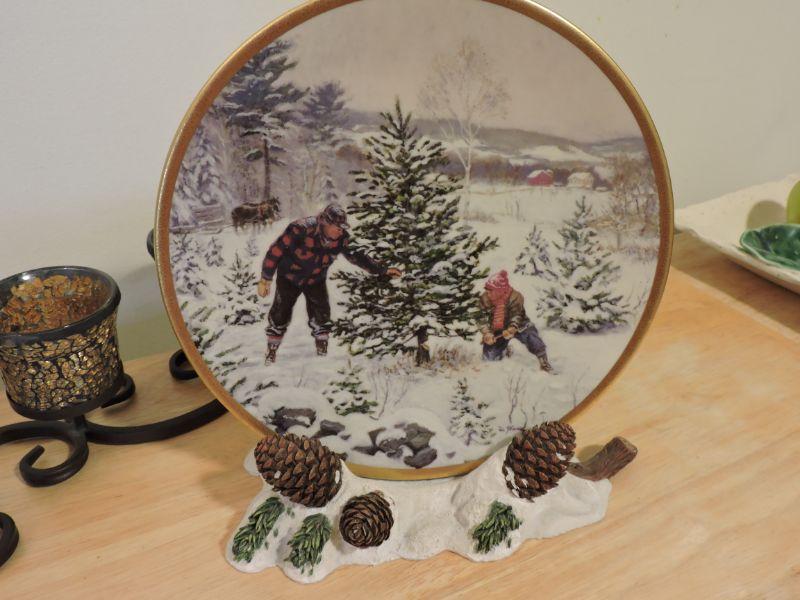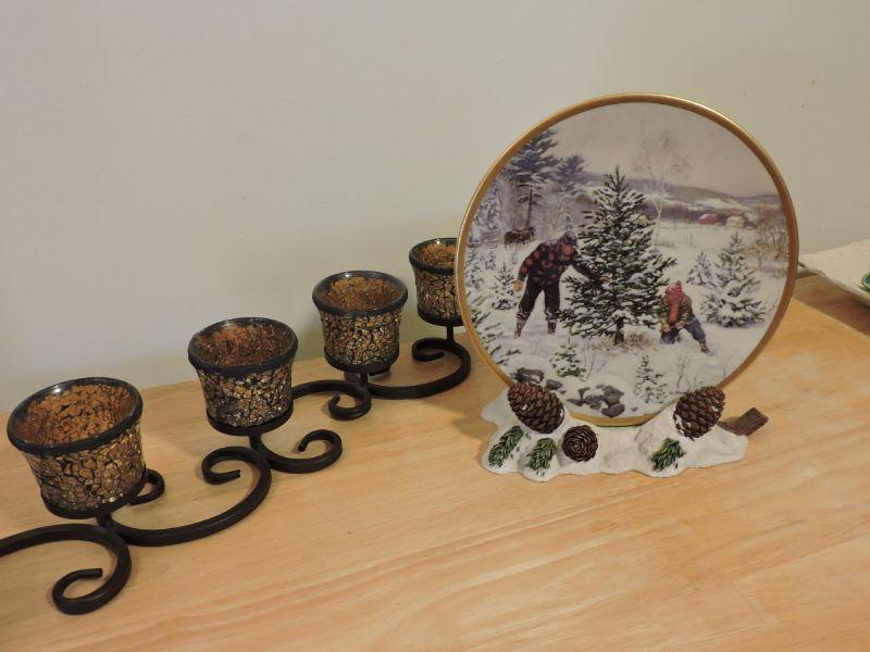 Lee Stroncek "Finding the Perfect Tree" Collectible Plate and Candle Holder