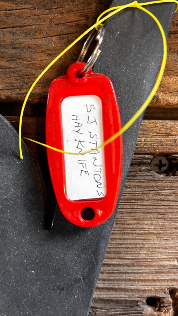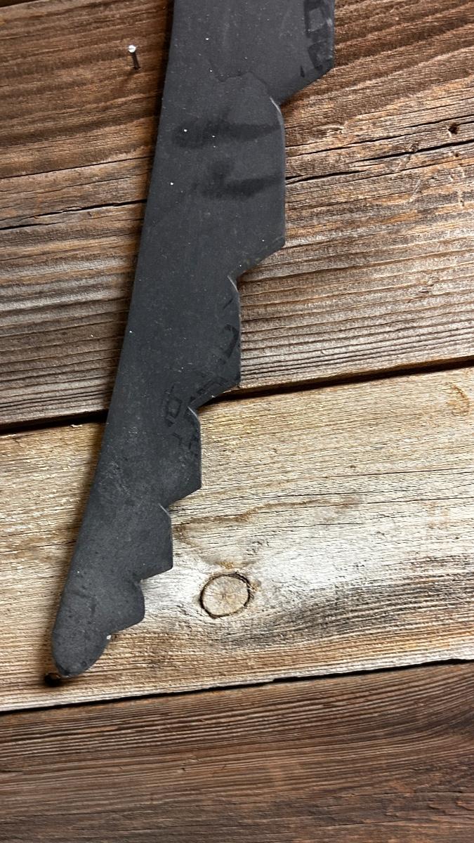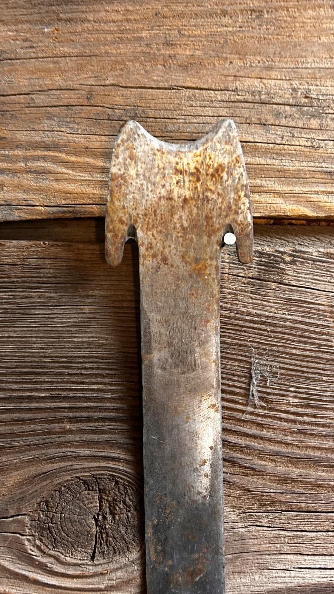 LEFT IS A ANTIQUE HAY KNIFE AND RIGHT ANTIQUE ROOF SLATE TOOL SHINGLE NAIL RIPPER PULLER HAND FORGED IRON CAST TOOL