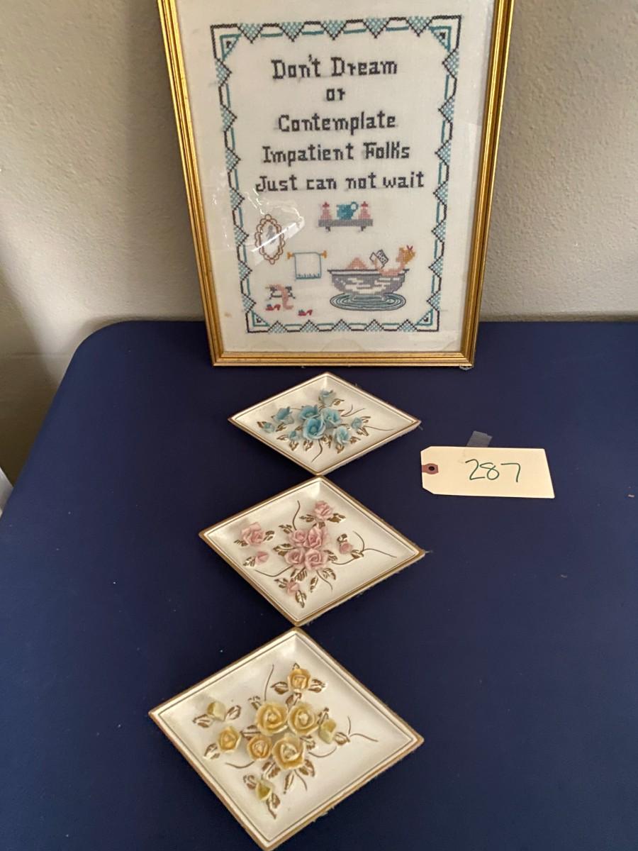 Leftin 3 Pc Wall Hanging, Cross Stitch Lot