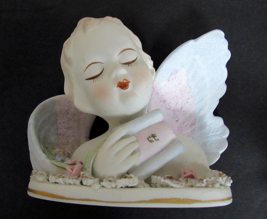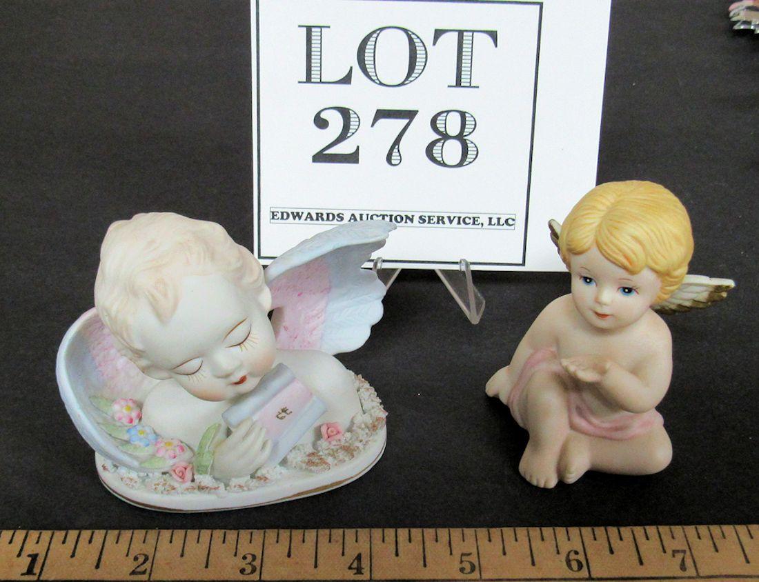 Lefton Bisque Angel Figurine and Heavenly Angels Figurine
