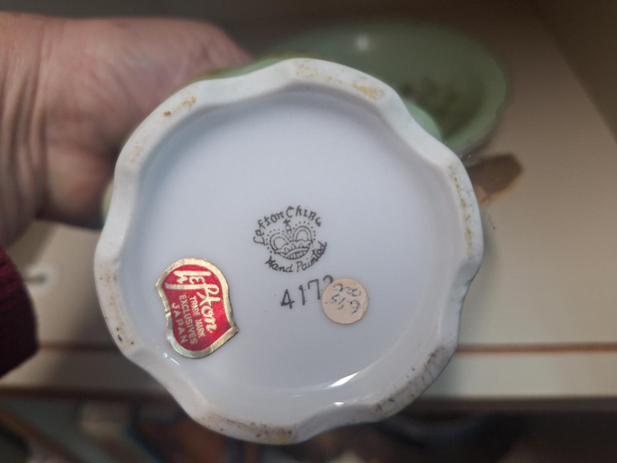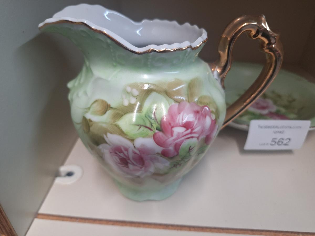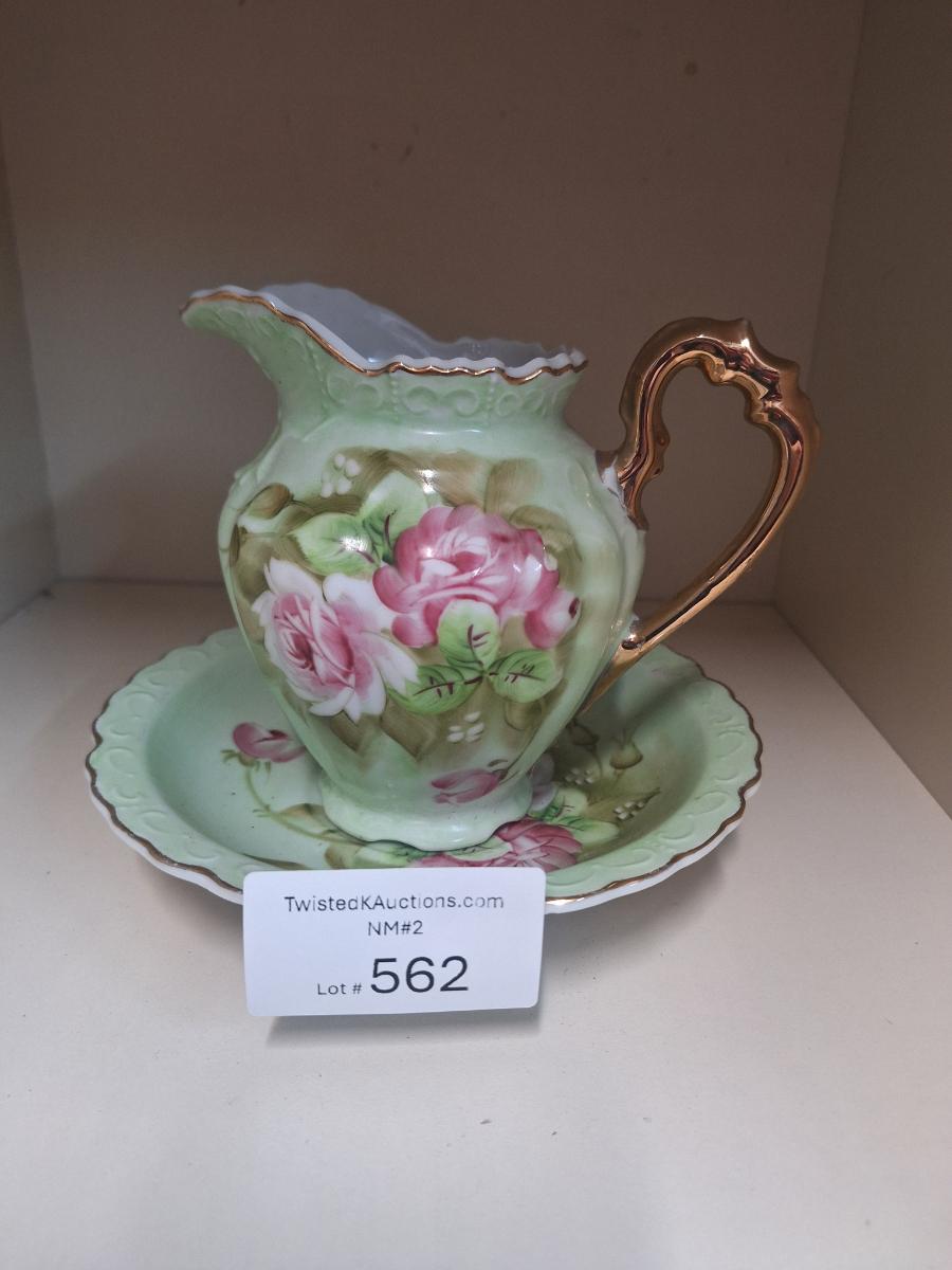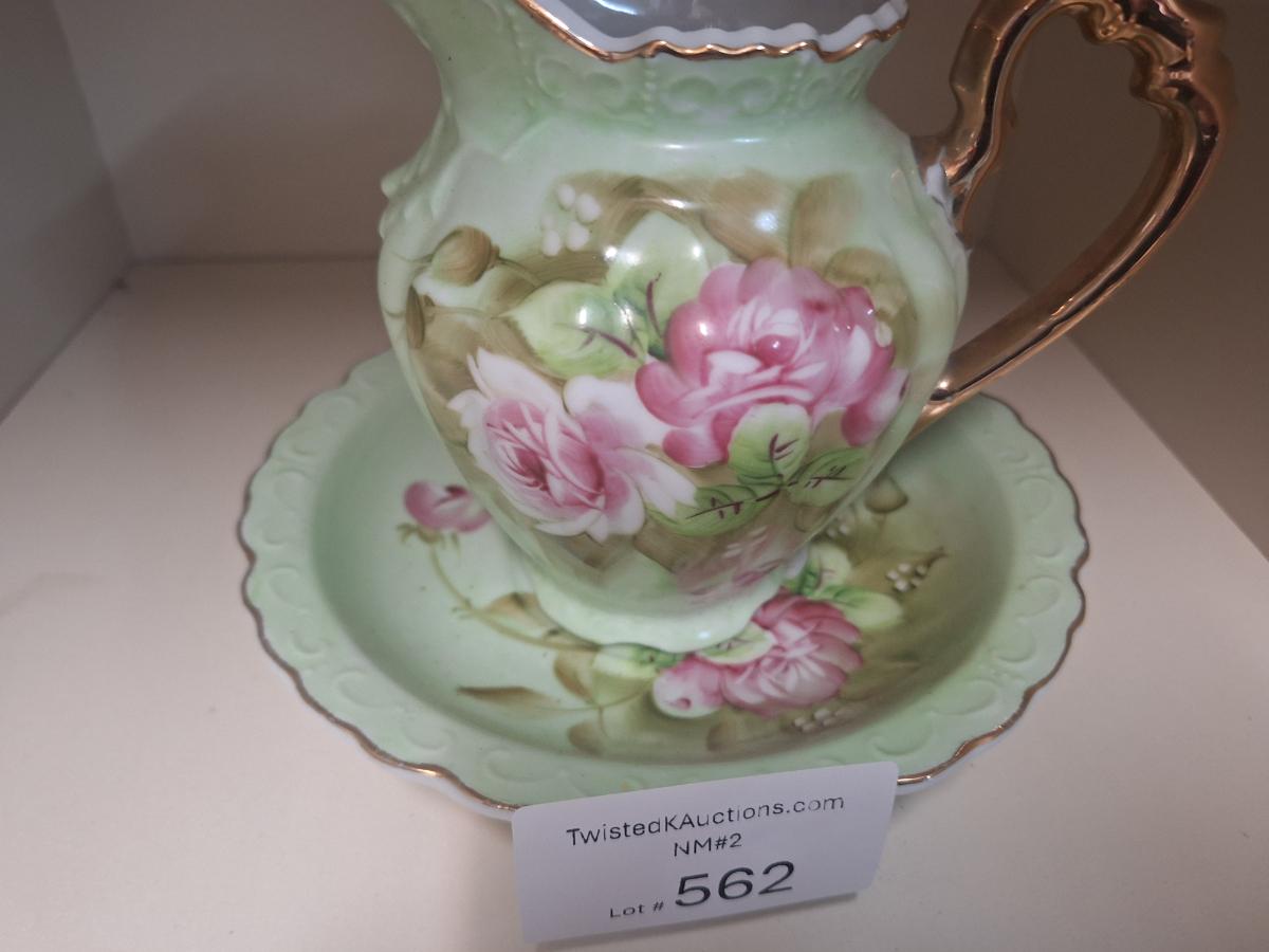 Lefton China "Heritage Green" pitcher and bowl set