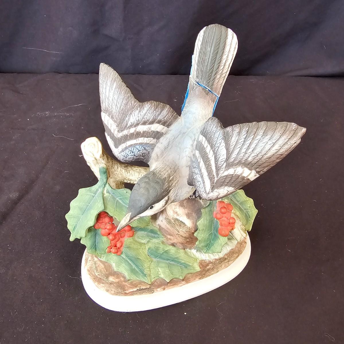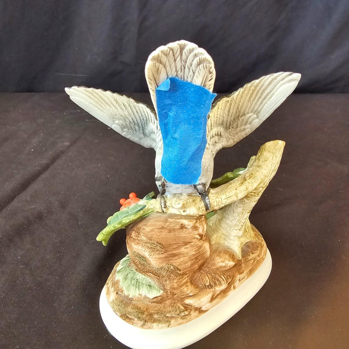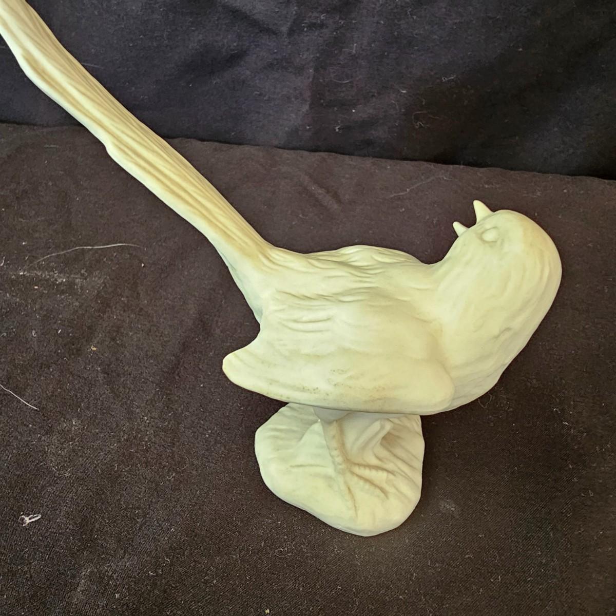 Six distinctive china bird sculptures by Lefton, Goebel and other companies. Most items are marked on bottom as to origin. All white piece measures 4.5" x 2" x 4"H. Largest piece is 5" x 3.5" x 6"H, has broken tail which is held by tape but can be repaired. See photos for details. Shipping available