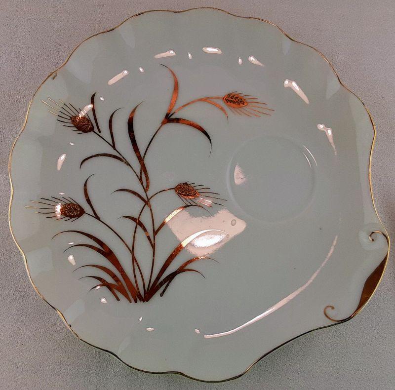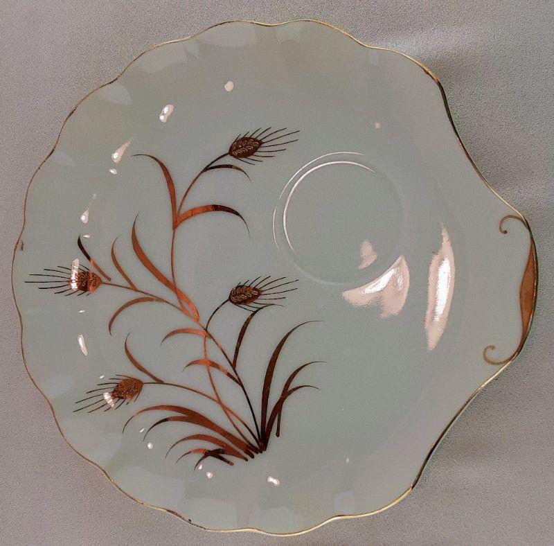 Shell shape luncheon/snack plate measures 8in by 7.5in. No cup