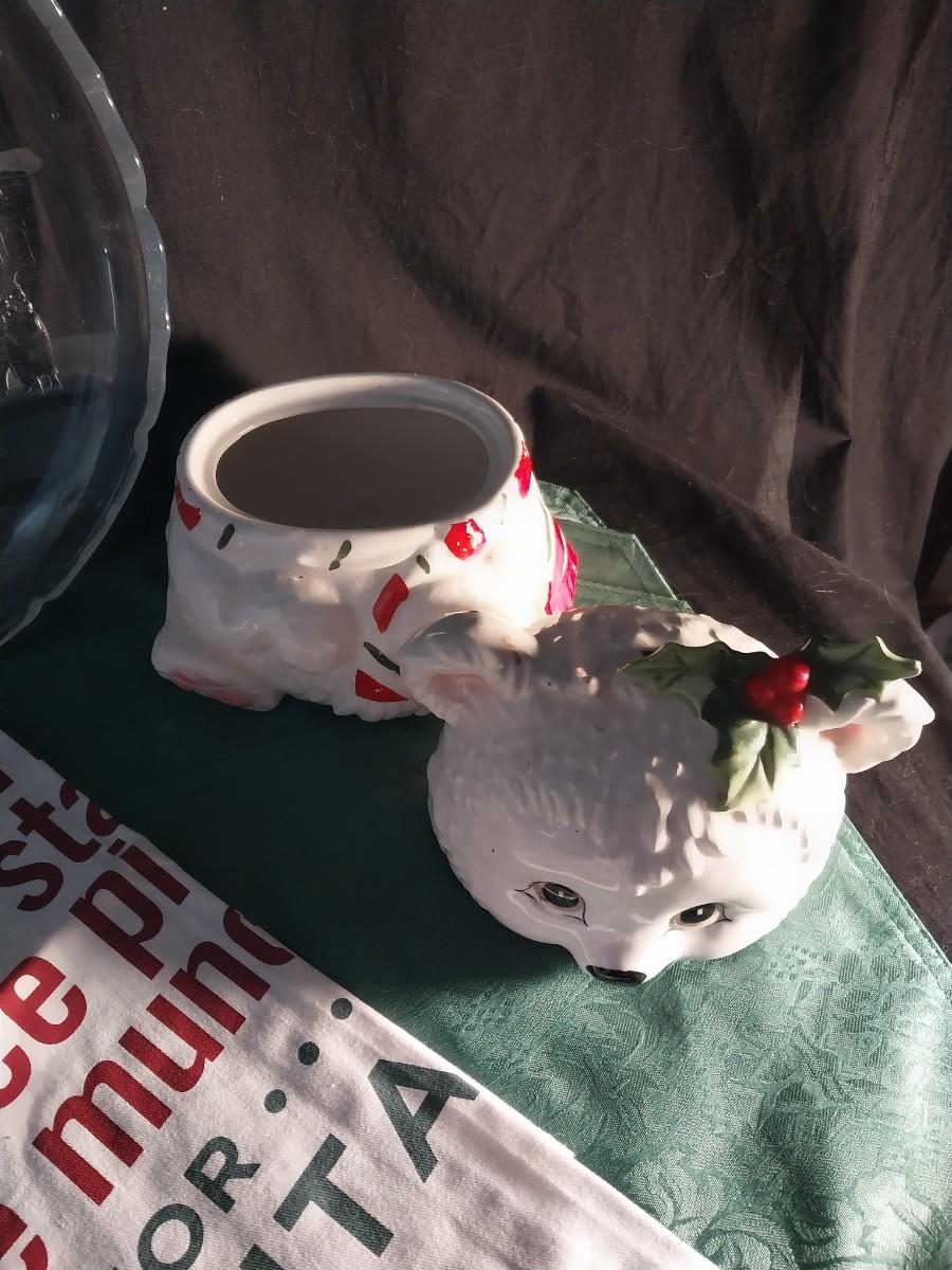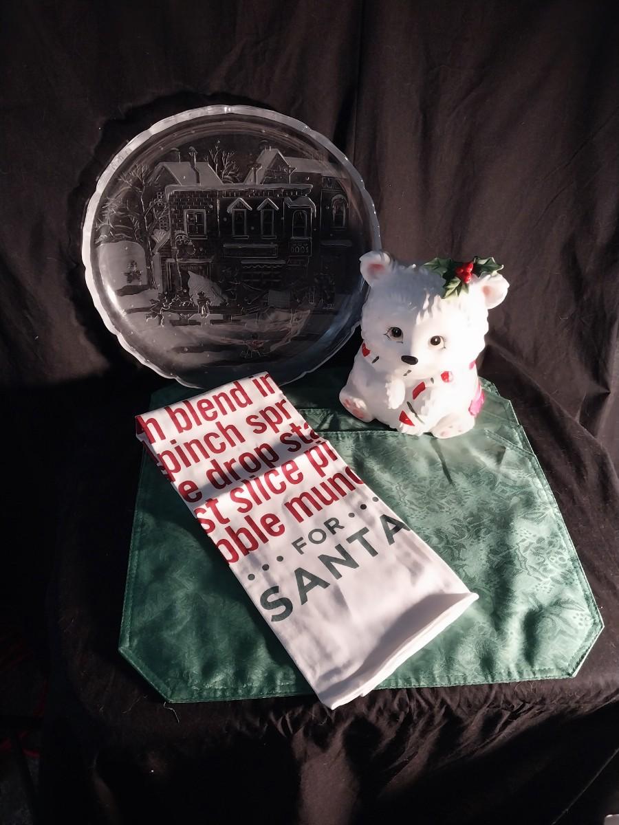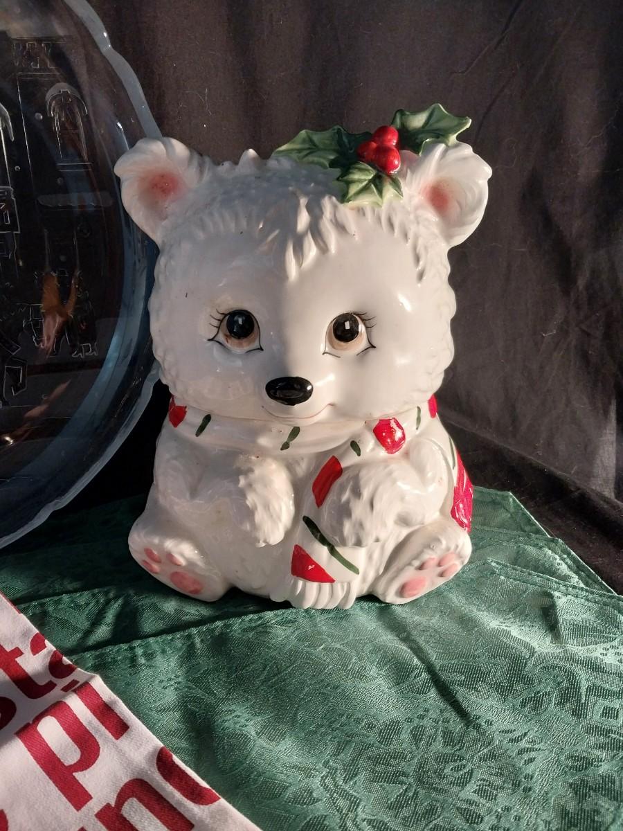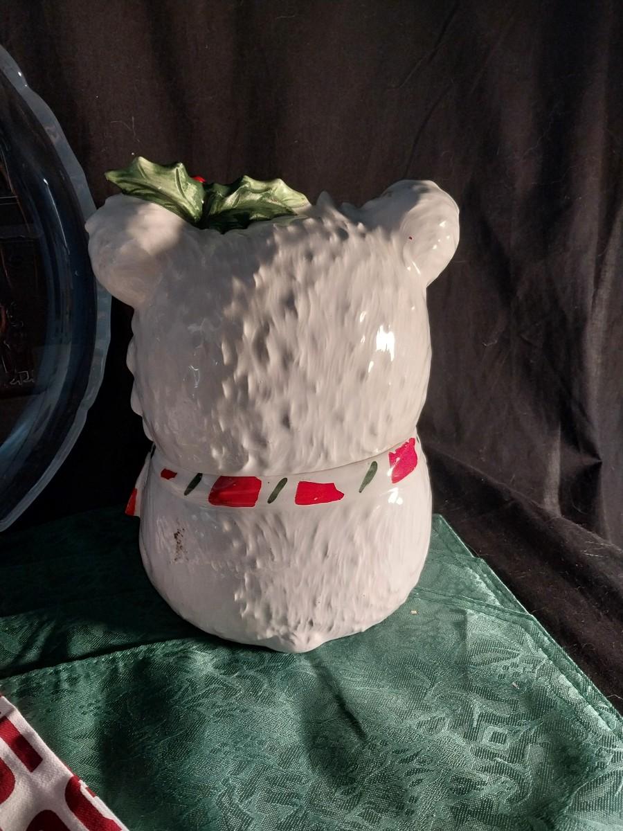 LEFTON HOLIDAY BEAR COOKIE JAR-GLASS PLATTER-KITCHEN TOWEL