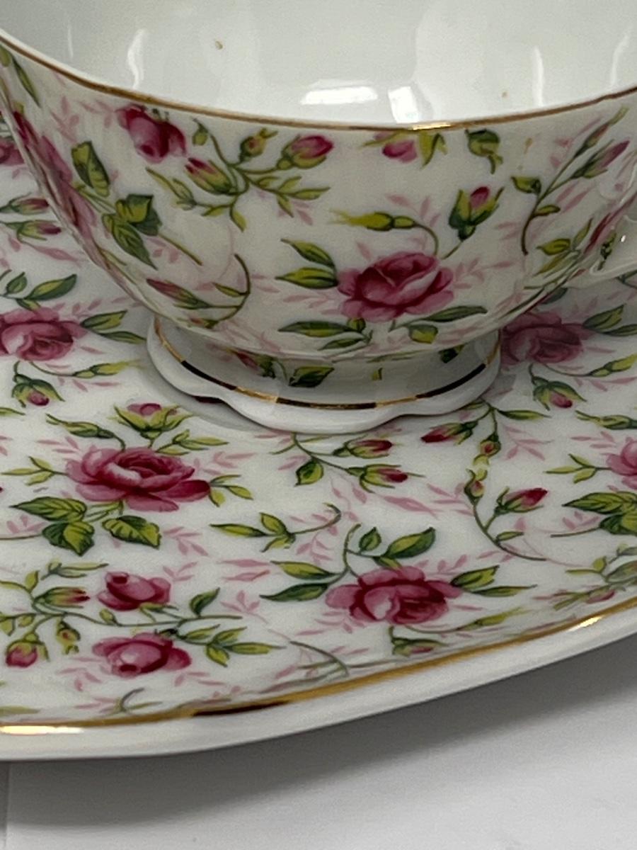Lefton handpainted vintage china tea cup and plate set of 4. 637R-N