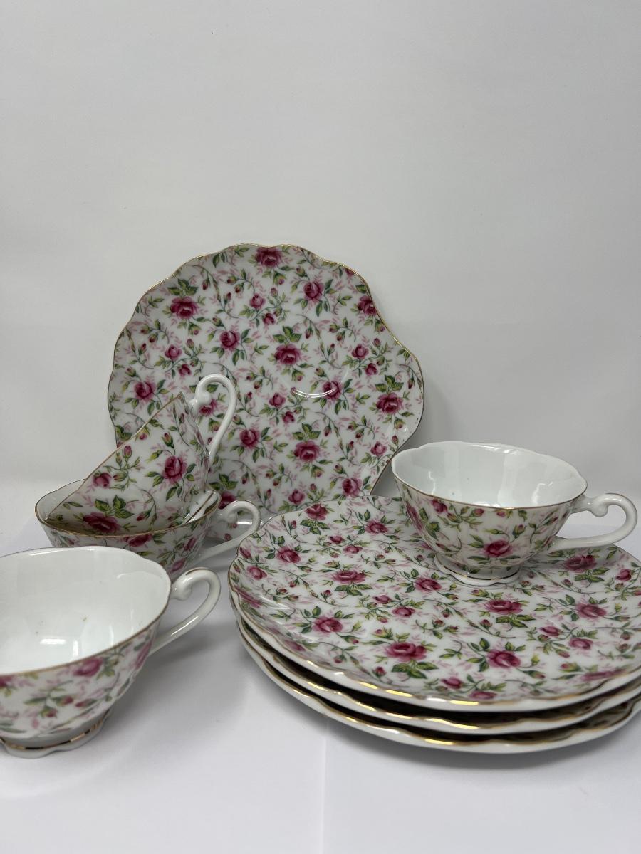 Lefton Hostess Snack Set of 4 Tea Cups & Plates