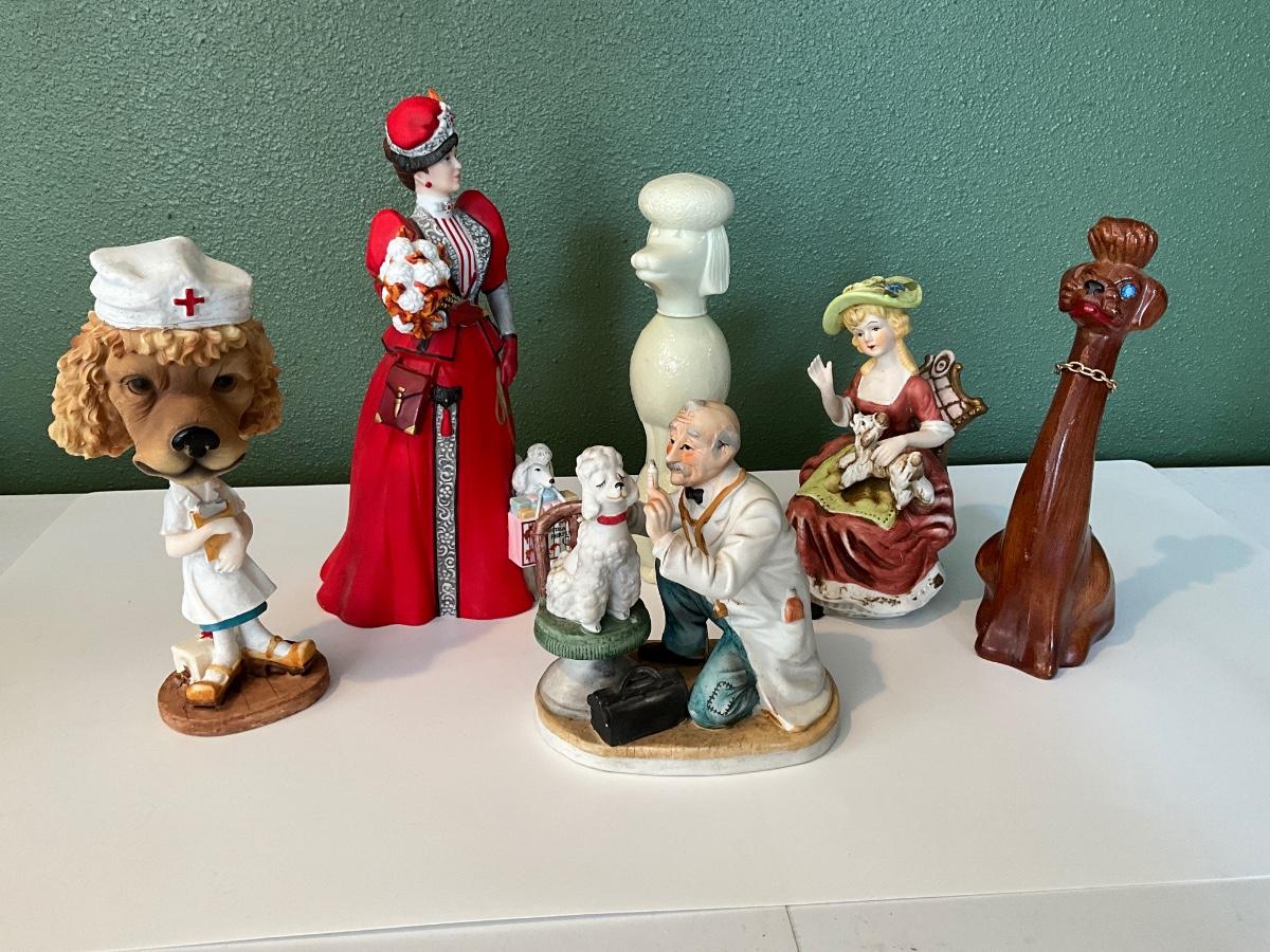 Lefton Japan Doctor plus bobble head nurse, AVON Lady and perfume dog, plus
