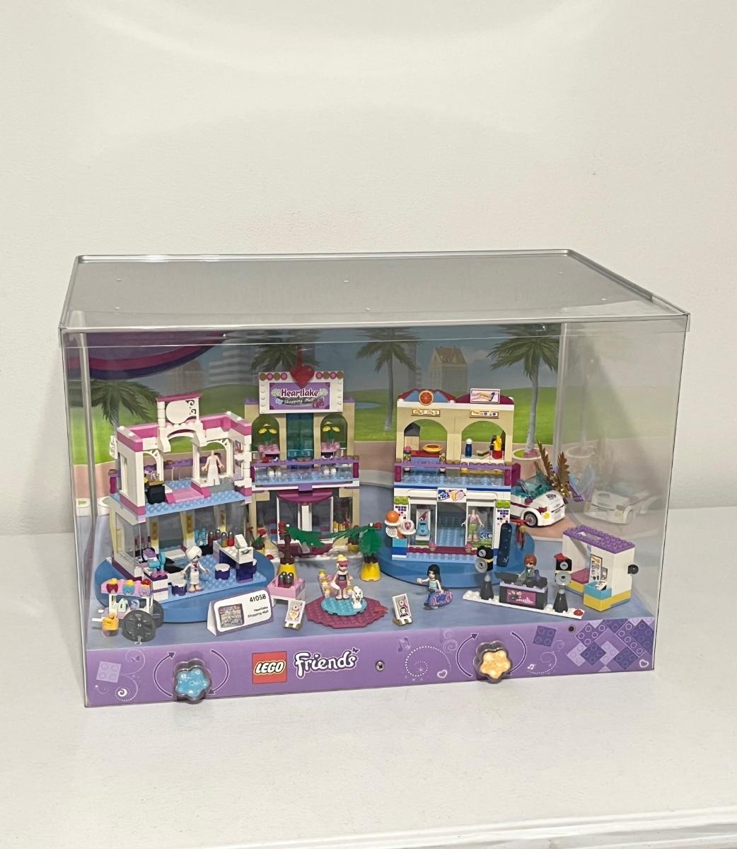 15” H x 23” W x 15” D ~ the two stores on each end spin ~ Case is Acrylic ~ Adorable to display in Little Girls Room