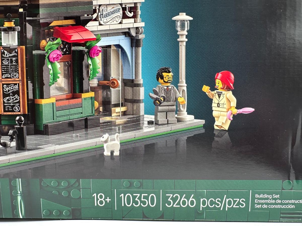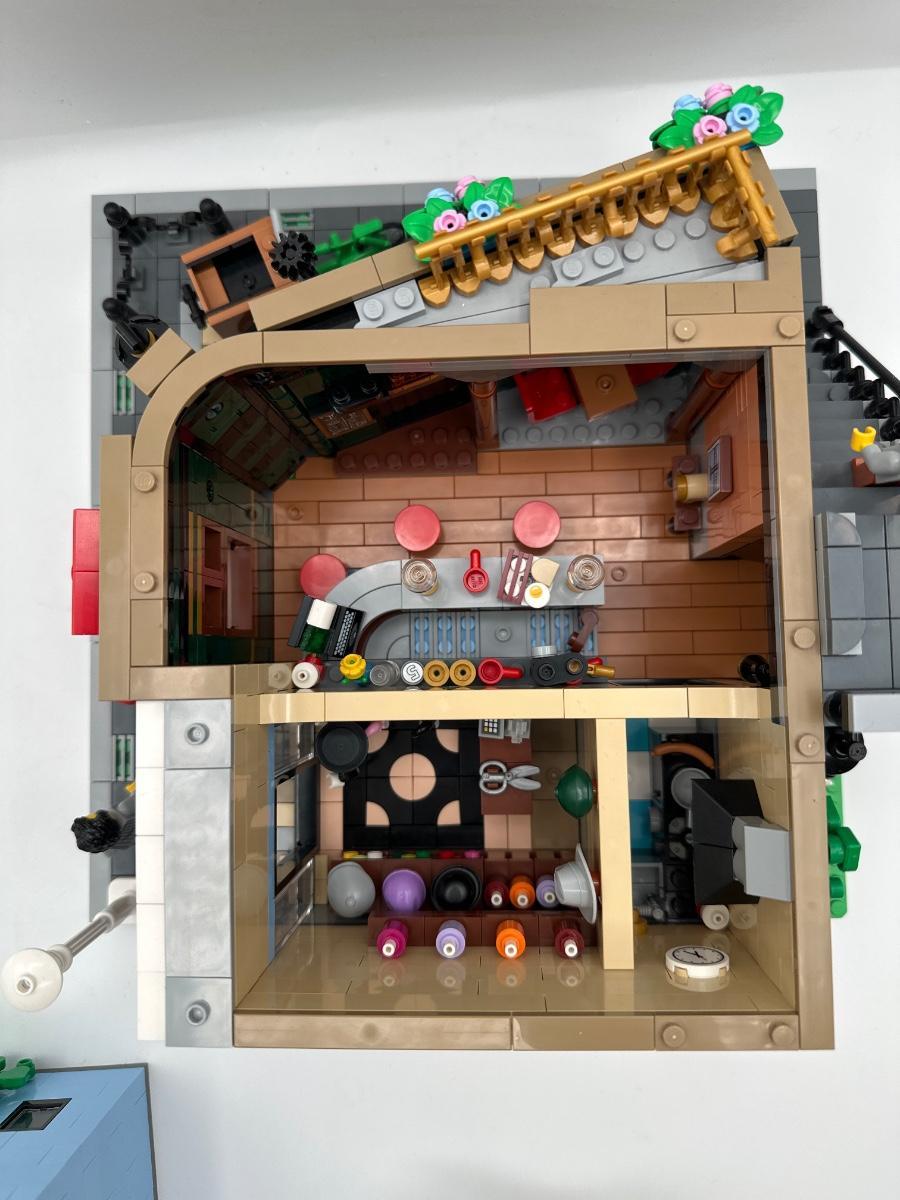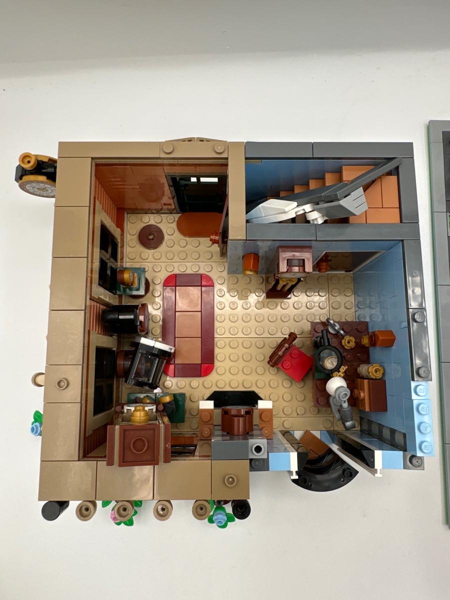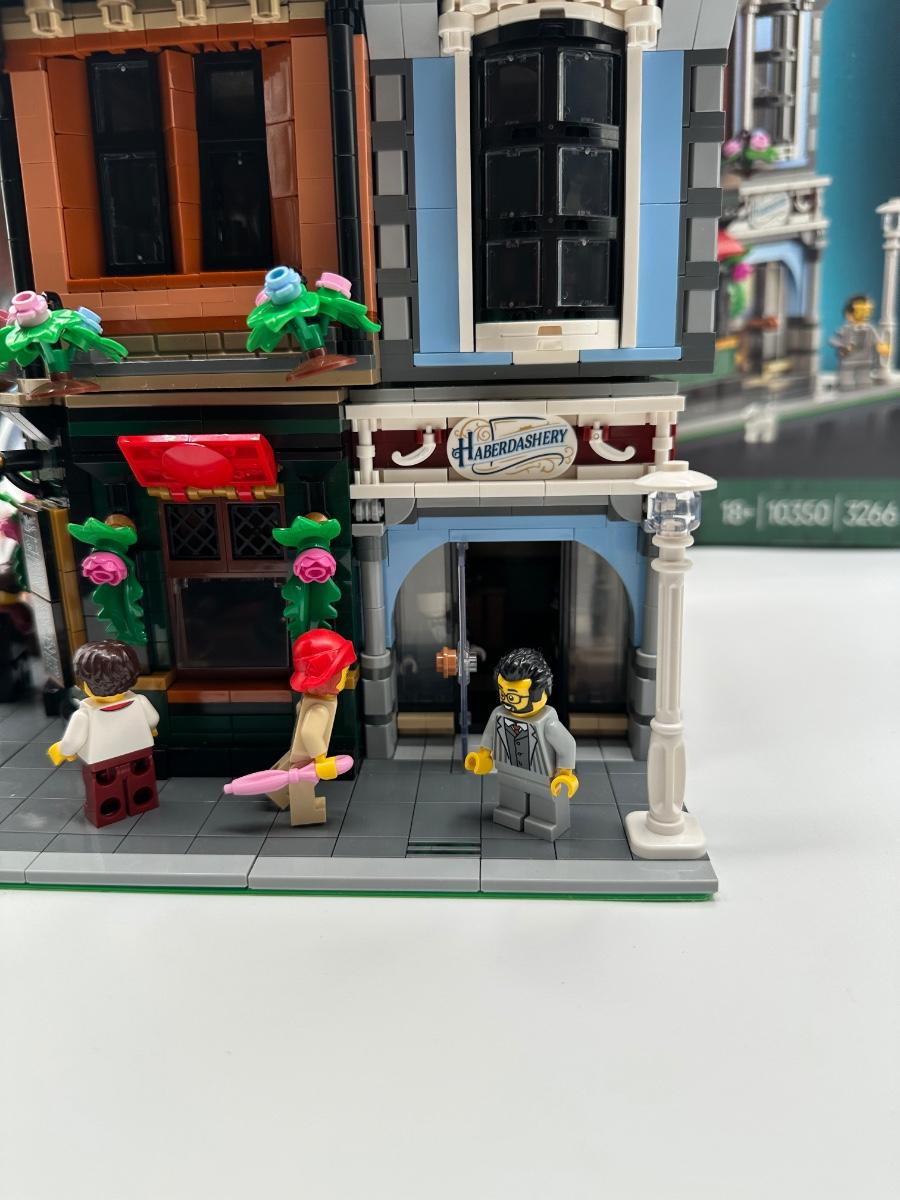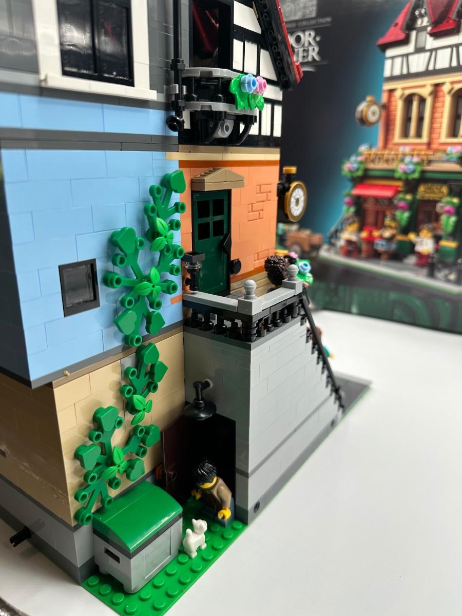 Complete Tudor Corner (Set 10350, 3266 pcs) – fully built with detailed street-level pub “The Old Guarded Inn,” upper apartments, and rooftop garden details.