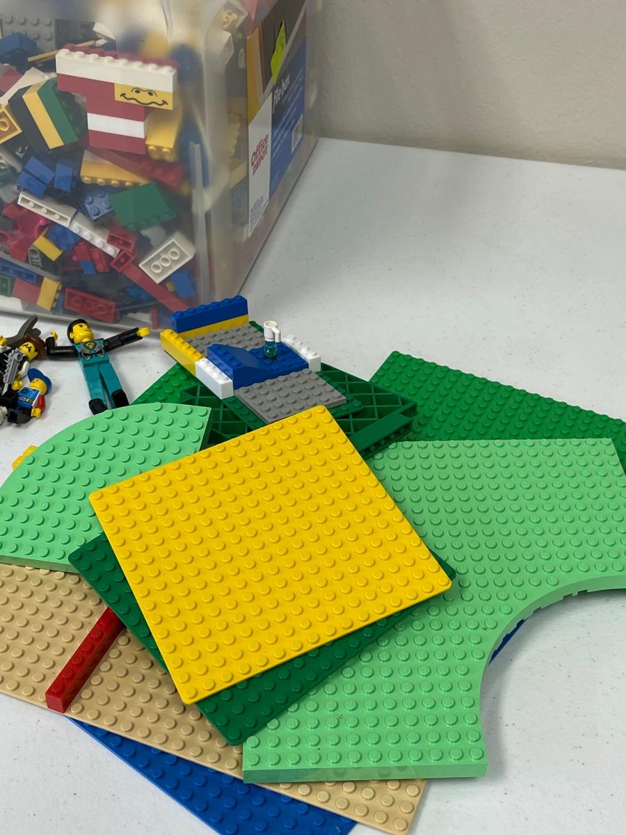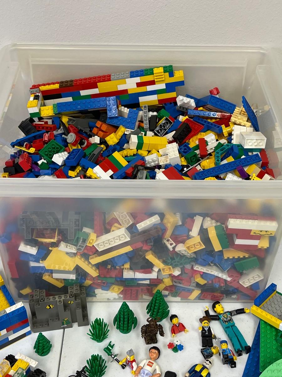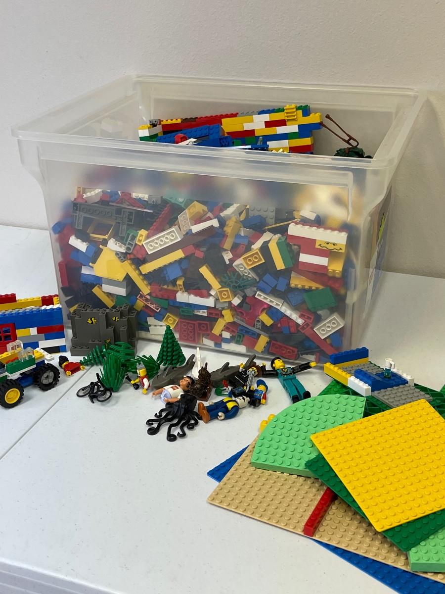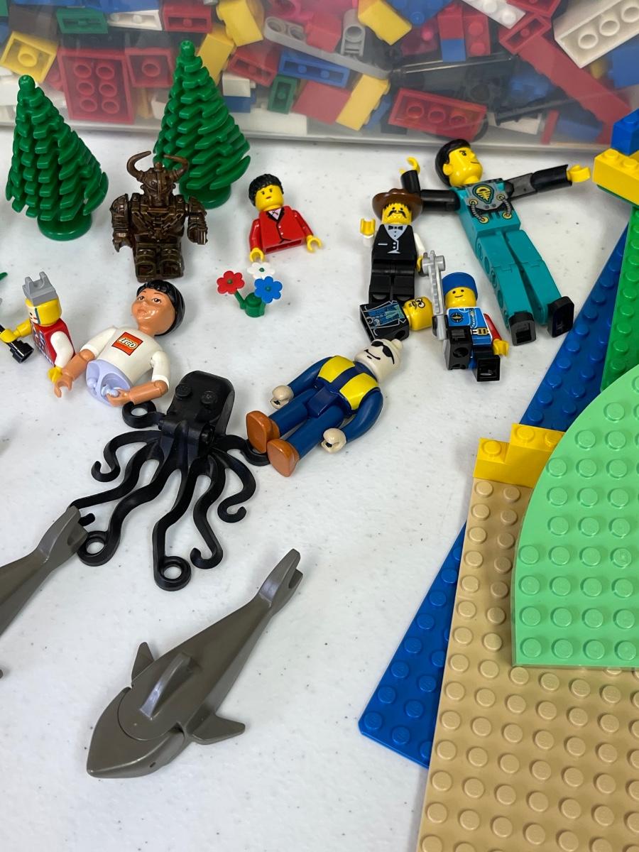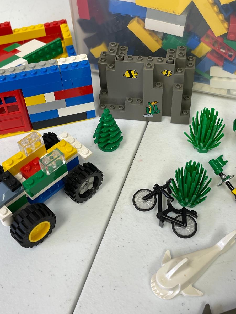 A whole tote full of Lego pieces and parts. Looks like there are Lego Aquarium pieces in this box. No guarantee that all parts to sets are here. Just a whole bunch of fun!