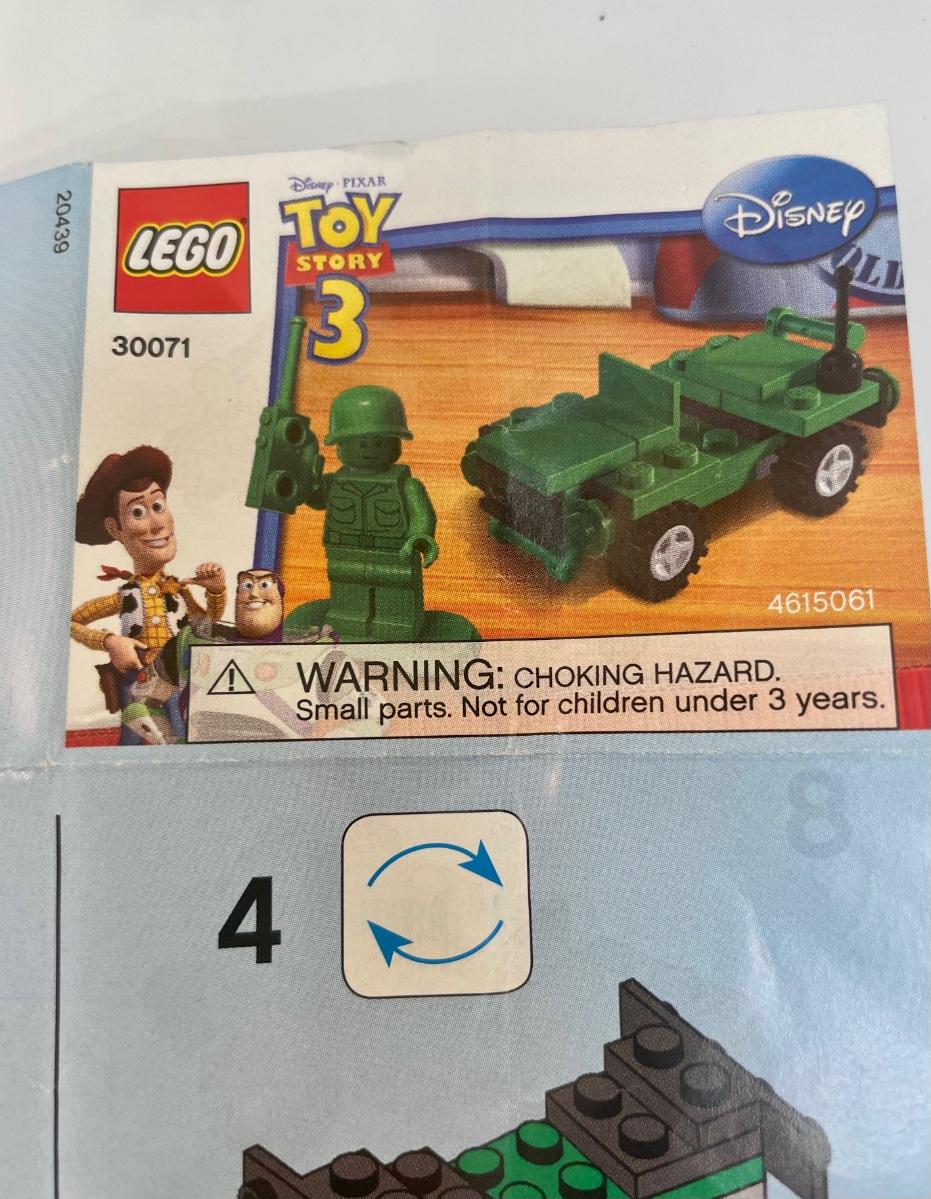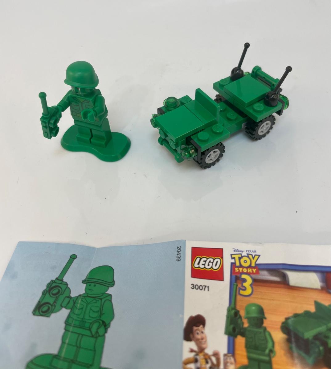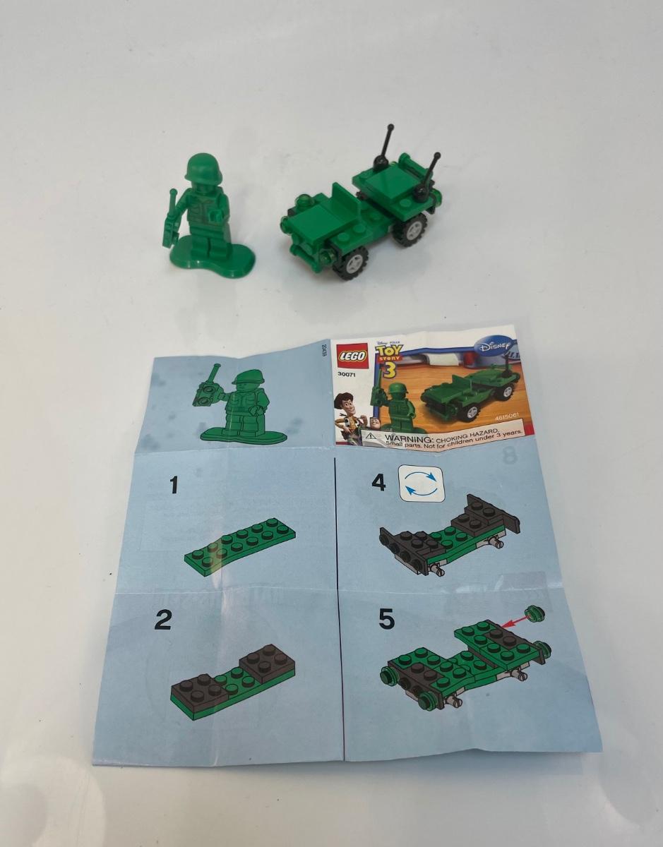 Lego Toy Story 3 Green Army Man and Jeep. Complete kit with instruction sheet, but no box. Kit 30071.