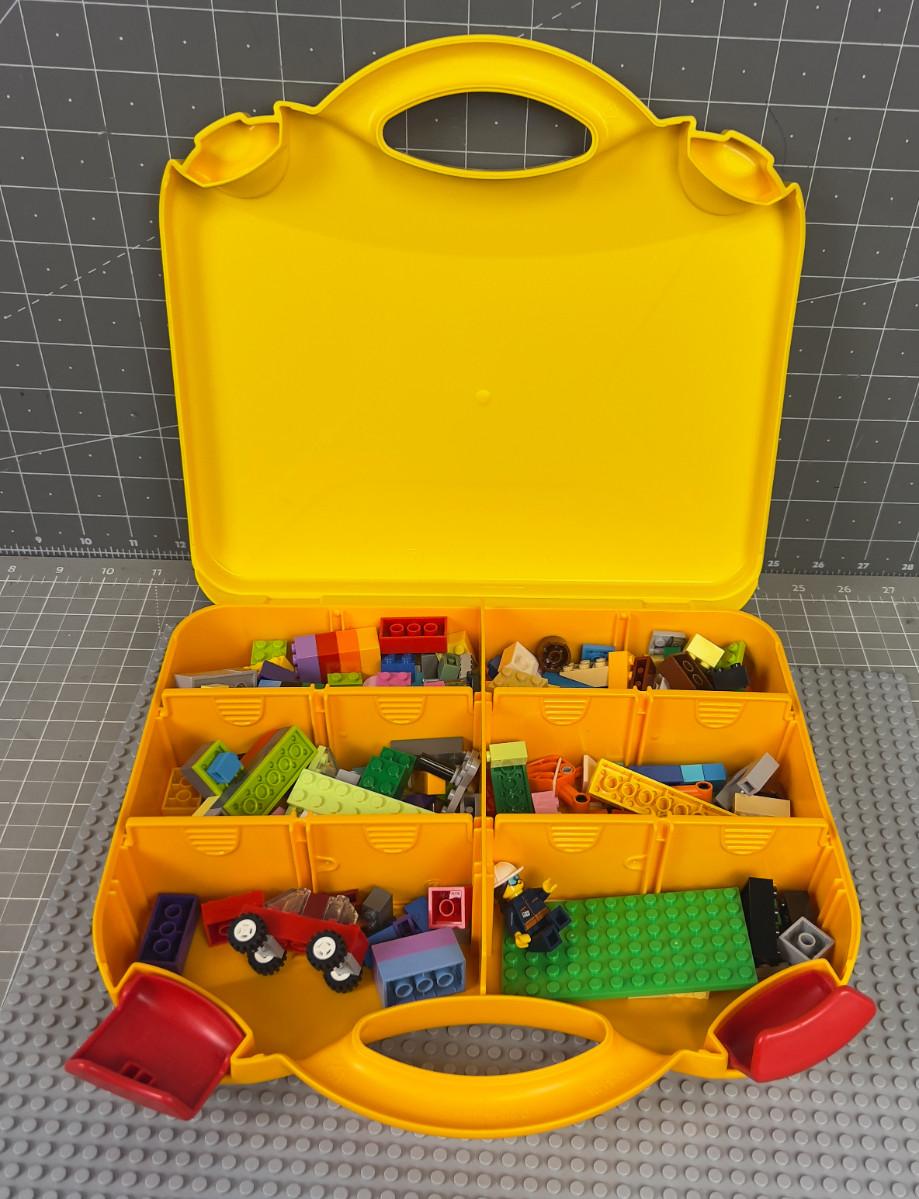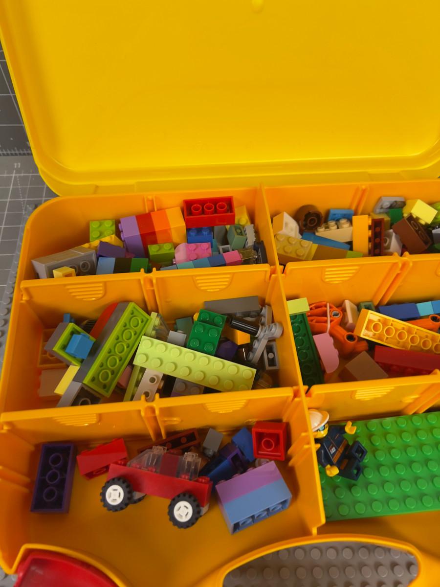 Legos, in a Lego Carrying Case, with a Lego Gray Mat