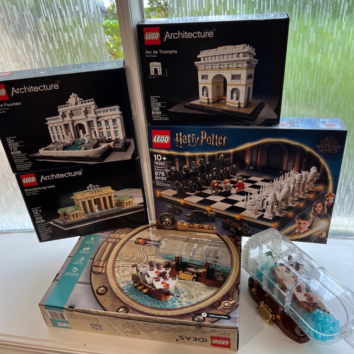 4 New in Box Retired Highly Collectible Legos Sets + 1 Put Together Ship Bottle