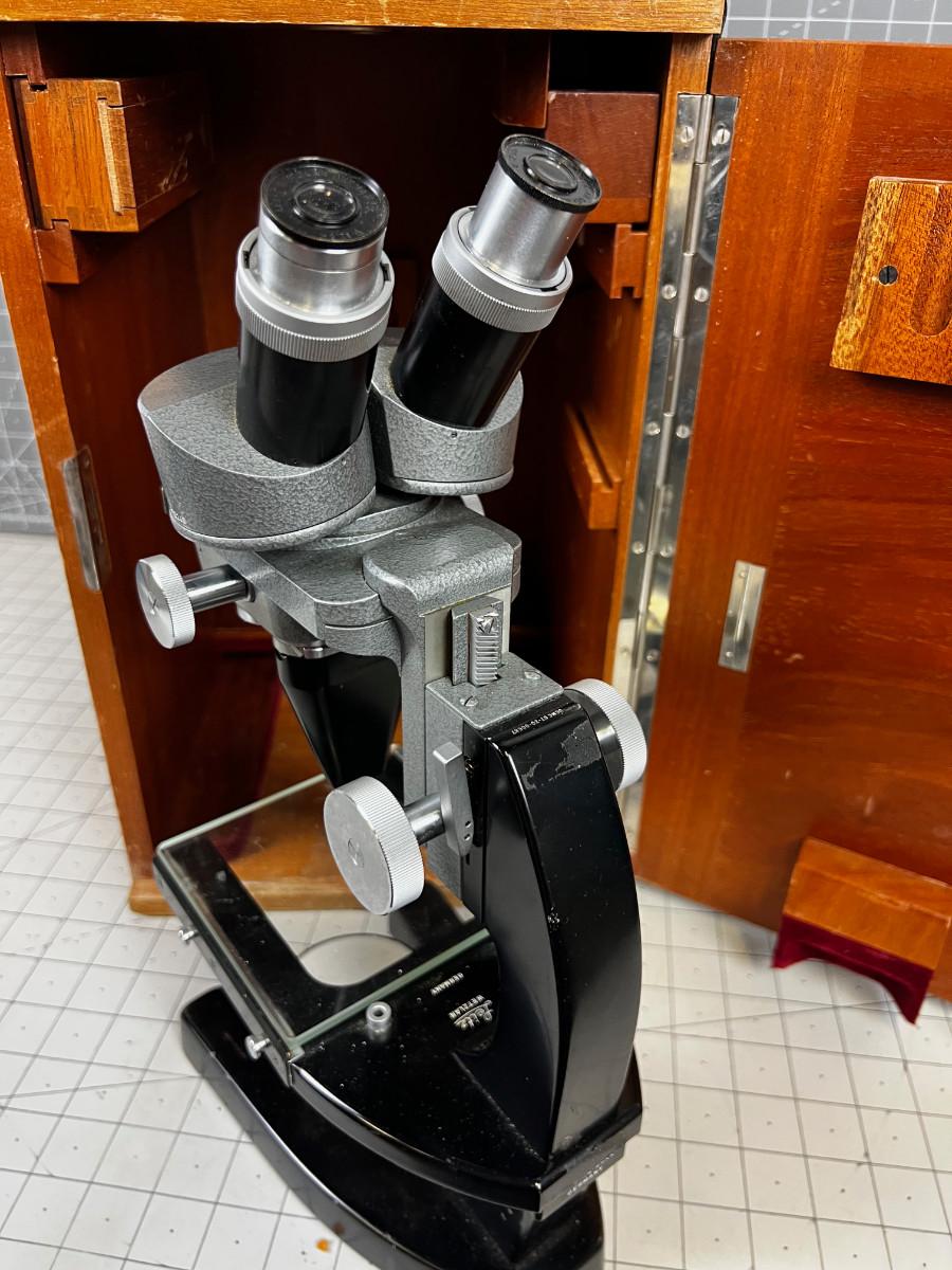 Good Condition. In Wood Carrying Case Box. Appears usable!